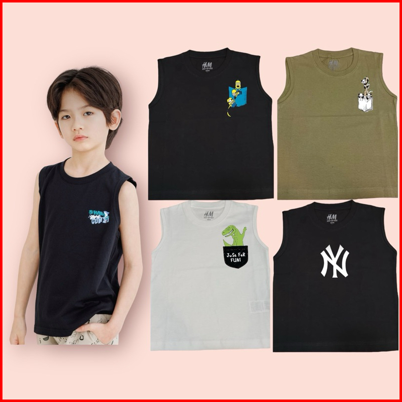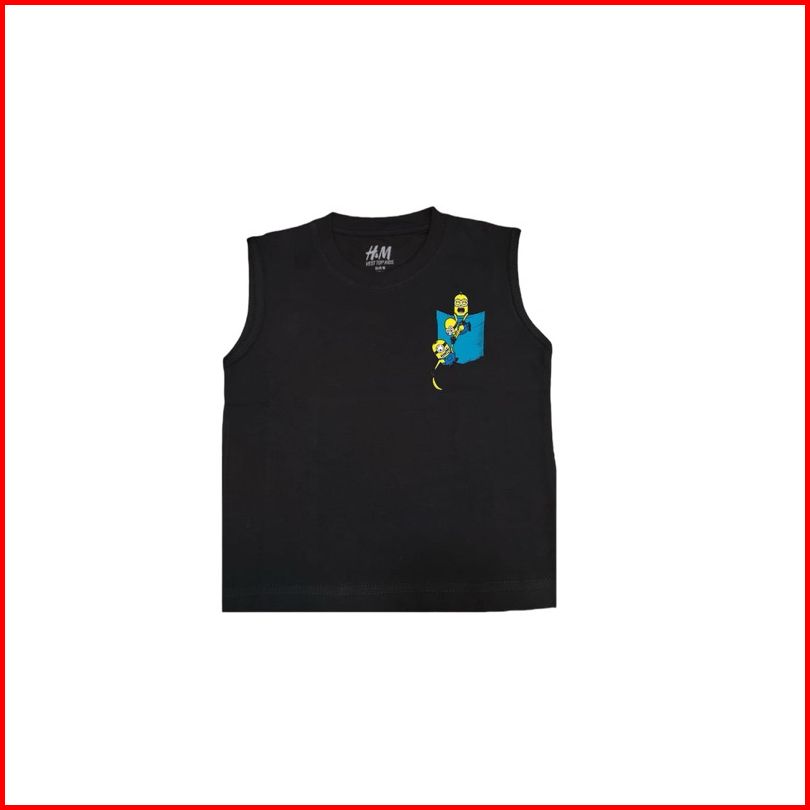 Little23 - Kaos Vest Top Motif Saku Anak Hnm Tank Top Cotton Combed 1-12tahun