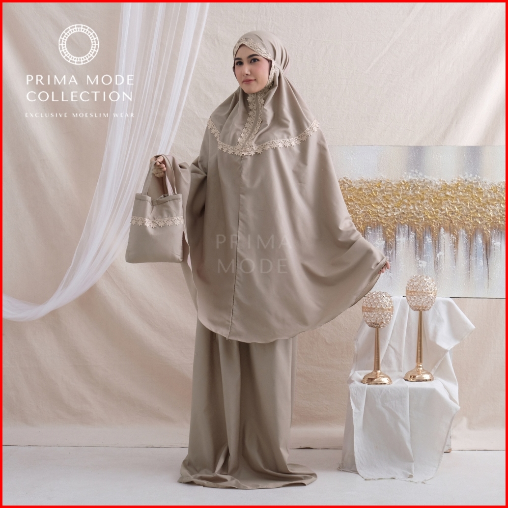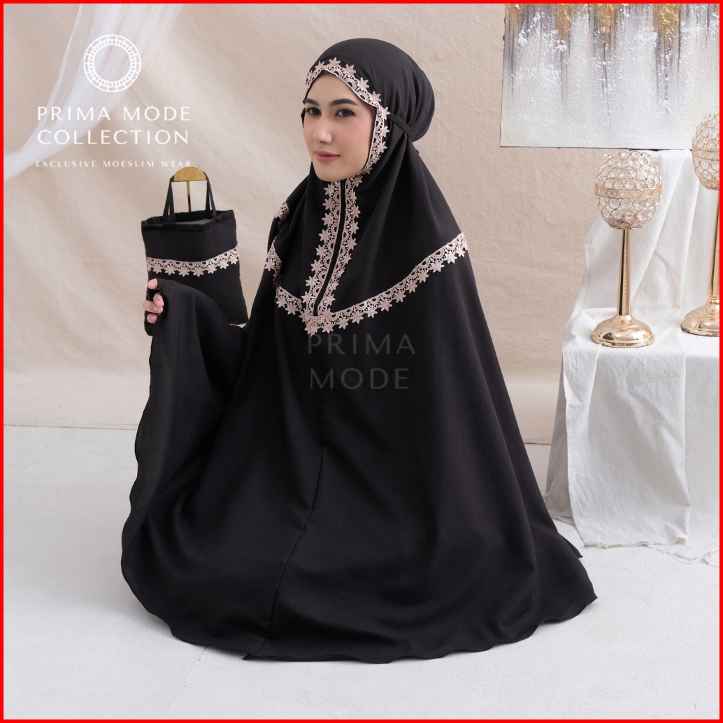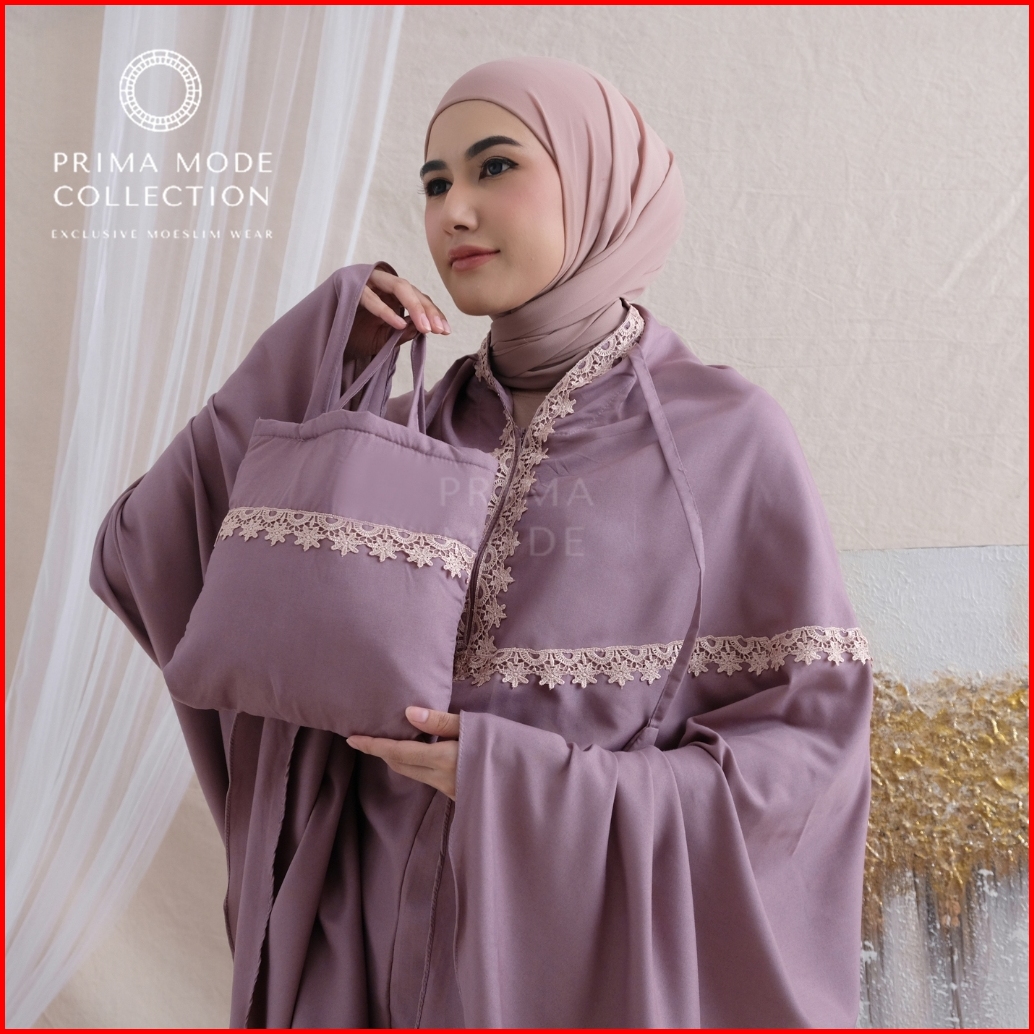 Prima Mode - Mukena Hawa Renda Daily Renda Mewah Dewasa Travel Mukena Katun Micro Panjang Pouch
