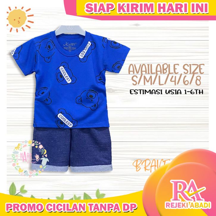 SETELAN BAJU PRINTING DENIM ANAK LAKI-LAKI KELFI USIA 1-7TH - BRAVE BENHUR, S