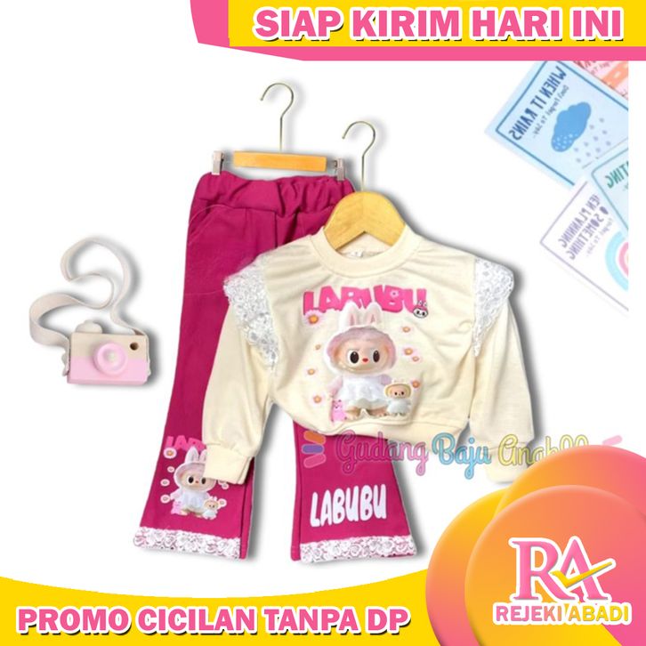 SETELAN LABUBU ANAK PEREMPUAN/SETELAN BAJU ANAK - FUSCHIA, 6-9 BULAN