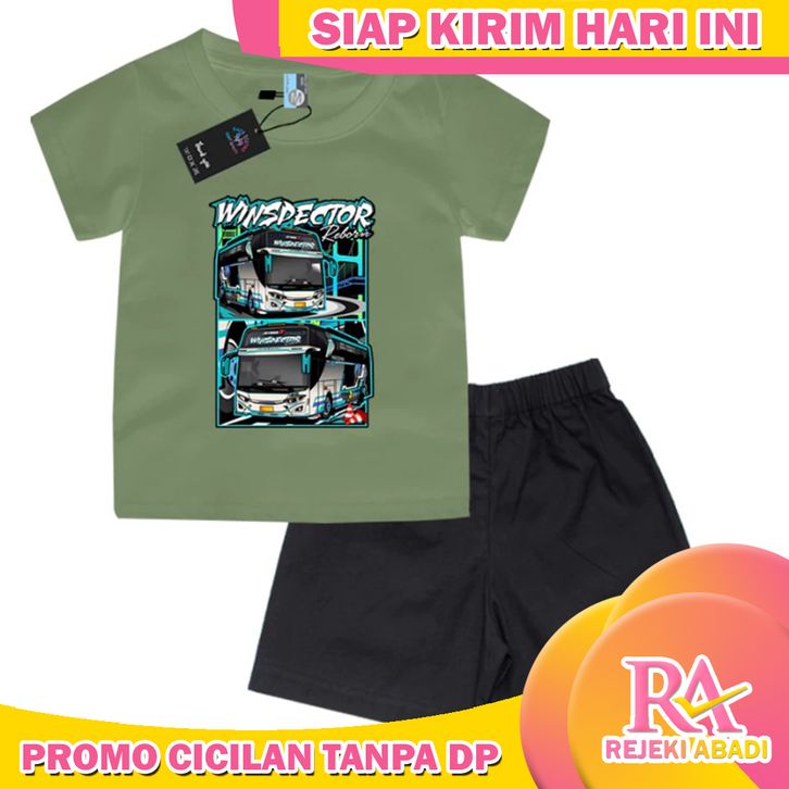 BAJU SETELAN ANAK LAKI COWOK KAOS CELANA PENDEK BIS MANIA WINSPECTOR - HIJAU PUPUS, XL