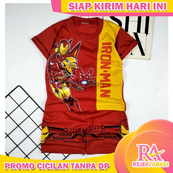 BAJU STELAN KAOS ANAK LAKI LAKI MOTIF IRONMAN USIA 1-10 TAHUN TERBARU - IRONMAN, 1 THN