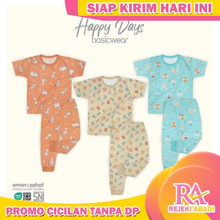 VELVET JUNIOR SETELAN BAJU ANAK KANCING PUNDAK PENDEK CELANA PANJANG - BASICWEAR TERBARU - HAPPY DAYS_3SET, M 6-9 BLN