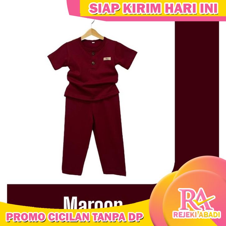 JISA KIDS - BAJU ANAK / SETELAN ANAK KANCING DEPAN BAJU PENDEK CELANA - MAROON, S