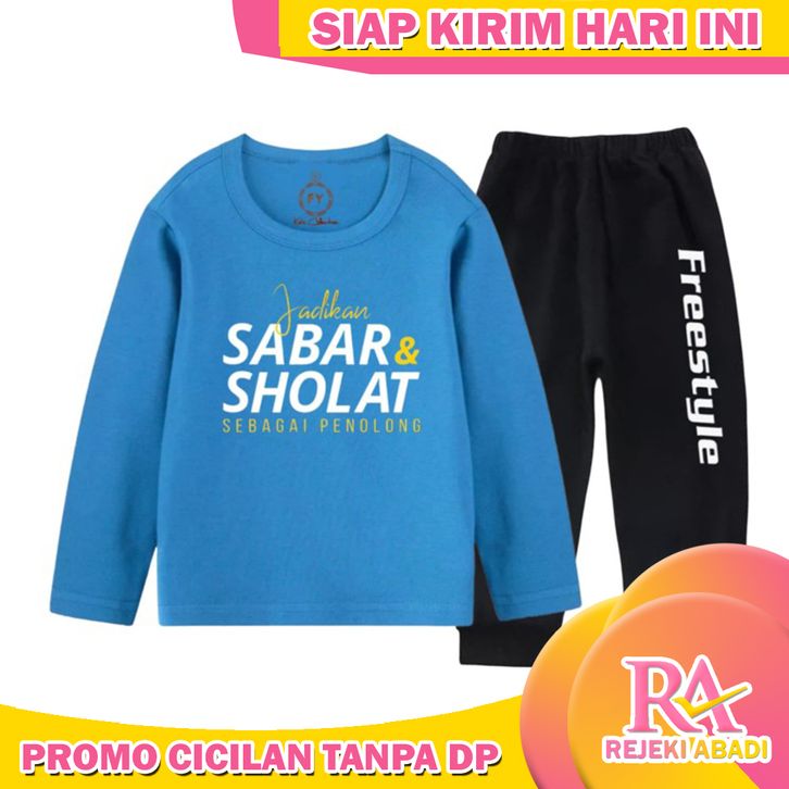 KAOS ANAK LAKI LENGAN PANJANG BAJU SETELAN SWEATER MUSLIM 1-10 TAHUN - BIRU, SIZE 2