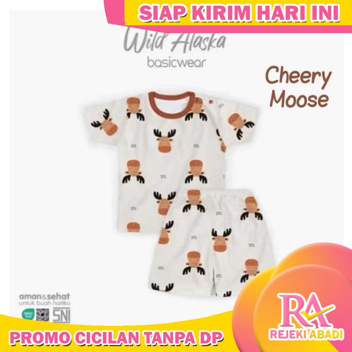 [SIZE SML/LB/XL/XXL] SETELAN PENDEK VELVET JUNIOR - SERI WILD ALASKA (BAJU ANAK) - CHEERY MOOSE, S