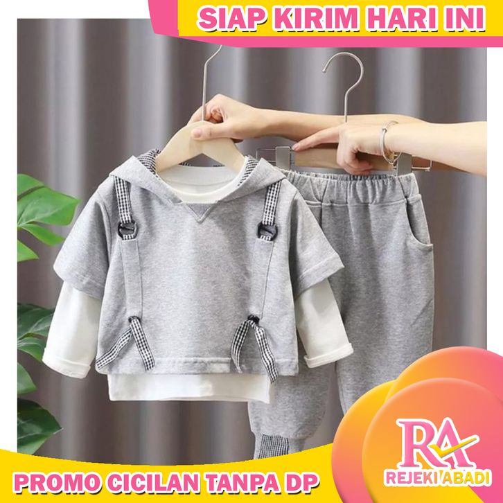 SATU SET SETELAN ANAK LAKI LAKI BAJU ANAK LAKI LAKI UNTUK UMUR 1-5 TAHUN - ABU-ABU, 3 TAHUN