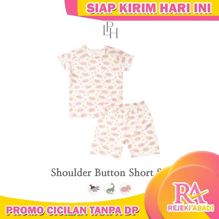 BAJU ANAK - LITTLE PALMERHAUS LITTLE WEAR SHOULDER BUTTON SHORT SET 25.0 - PINK DINO, 2-3 Y