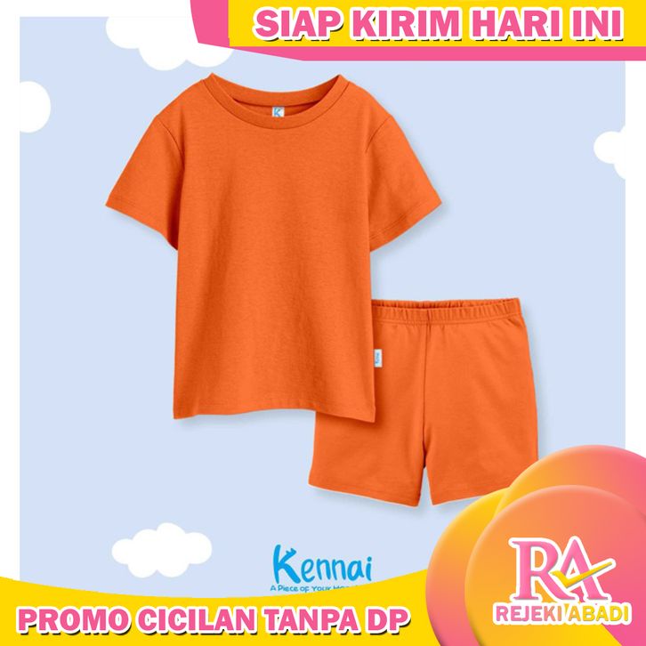 KENNAI SETELAN KAOS POLOS 1 ANAK T-SHIRT KIDS USIA 1 - 12 TAHUN - ORANGE, S