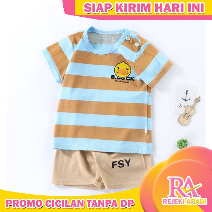 SETELAN ANAK LAKI MOTIF GARIS BEBEK/BAJU PERGI ANAK BAHAN KATUN LEMBUT - GARIS BEBEK, 73CM