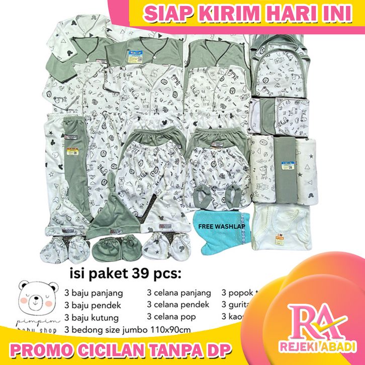 PAKET 39 PCS PERLENGKAPAN LAHIRAN SET BAJU BAYI BARU LAHIR HEMAT - ABU JERAPAH