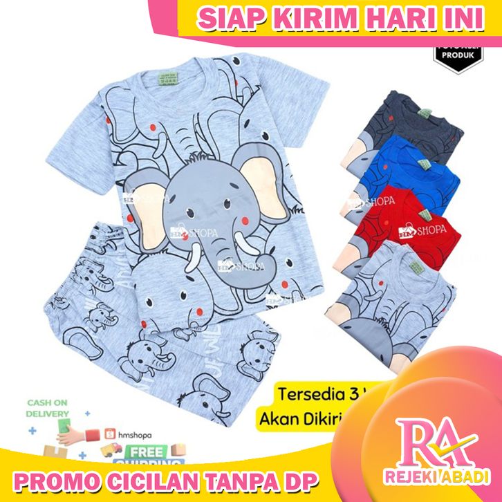 HM BAJU SETELAN KAOS ANAK LAKI MOTIF GAJAH LUCU HEWAN KEREN 1-10 TAHUN - SIZE 14 ±7TH