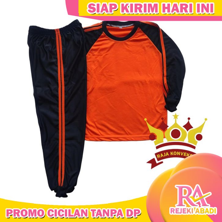 SETELAN OLAHRAGA BAJU TRAINING ANAK SEKOLAH SD SMP - OREN HITAM, M