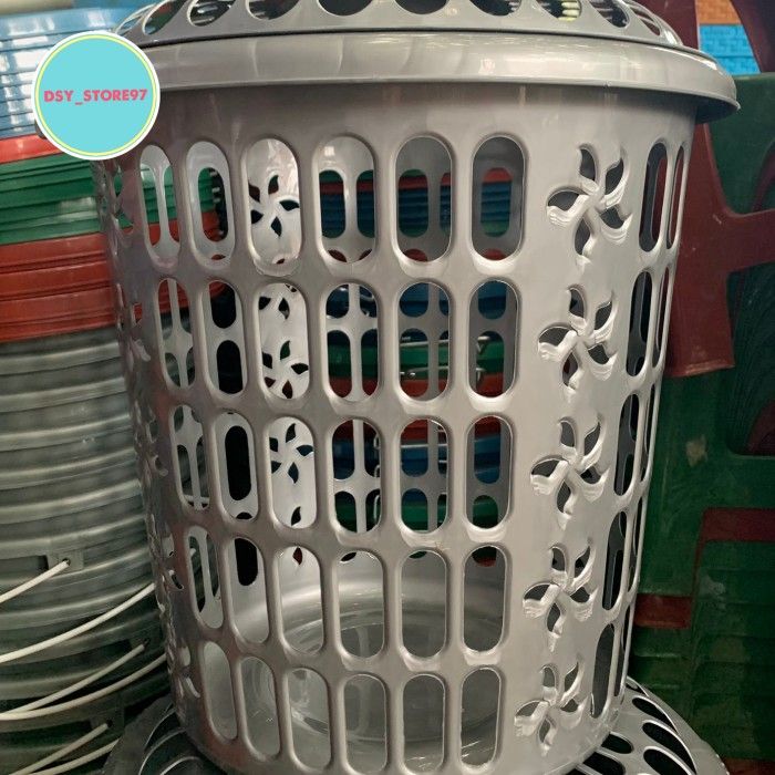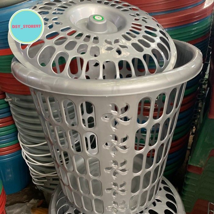Terlaris Keranjang laundry bulat tutup silver / keranjang pakaian serbaguna Elegan