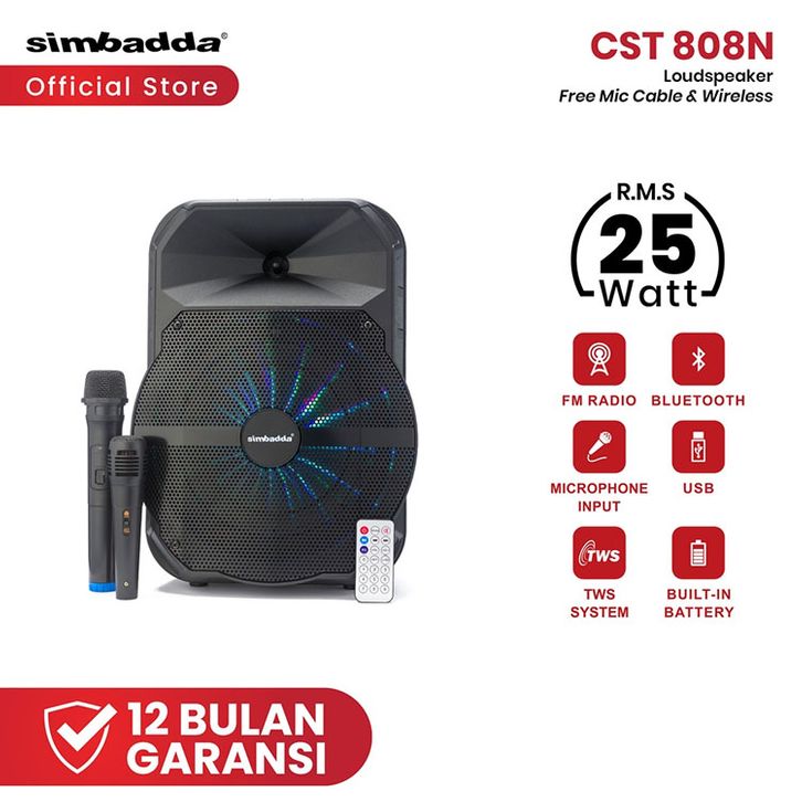 Speaker Karaoke Bluetooth Simbadda Cst 808n Bonus 2 Mics (Wireless And Cable) + Tws/Salon Aktif/Musik Box Bluetooth