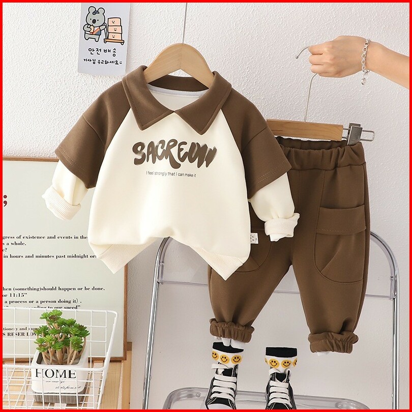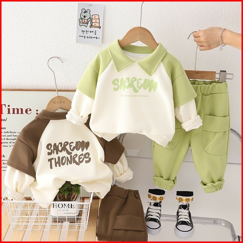 Setelan Sweater Anak Laki Laki Import Stelan Sweater Anak Balita Impor Sweater Lengan Panjang Tulisan Sacreow Anak Cowok