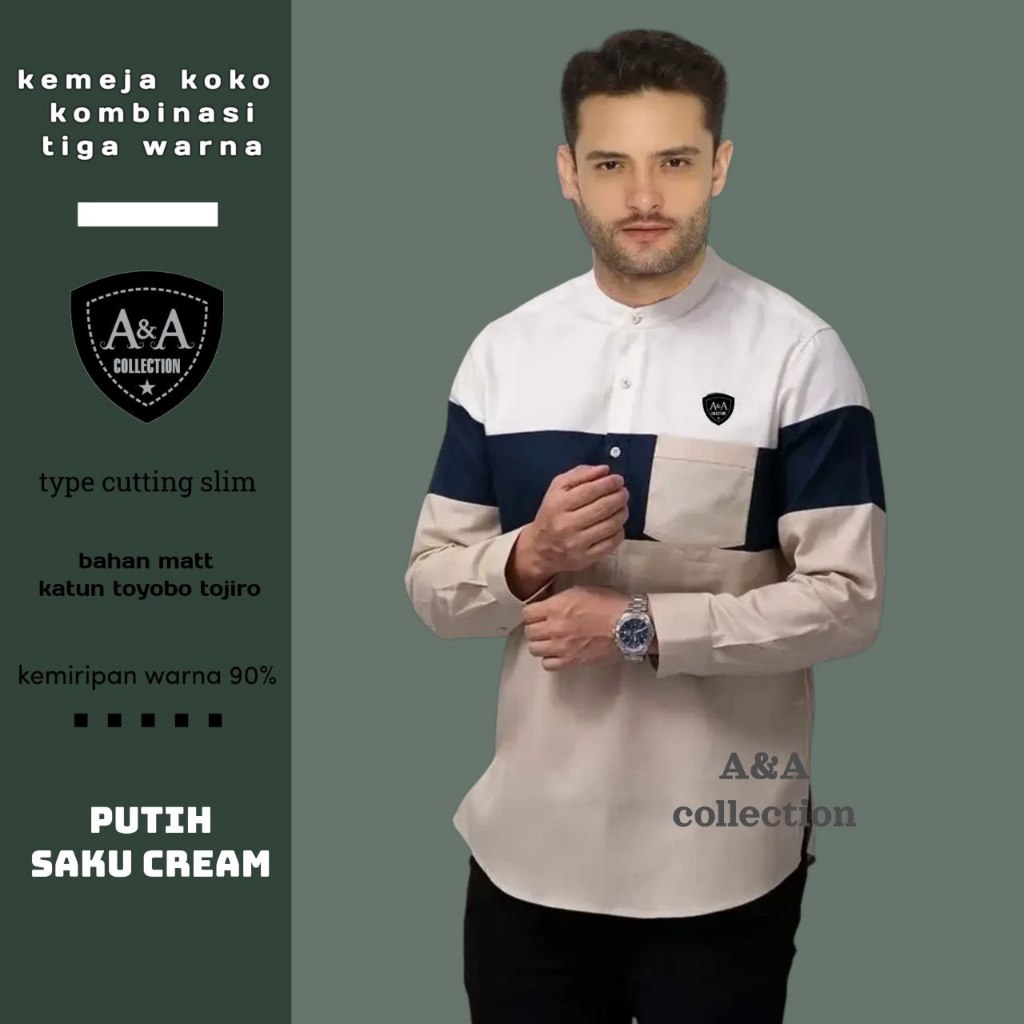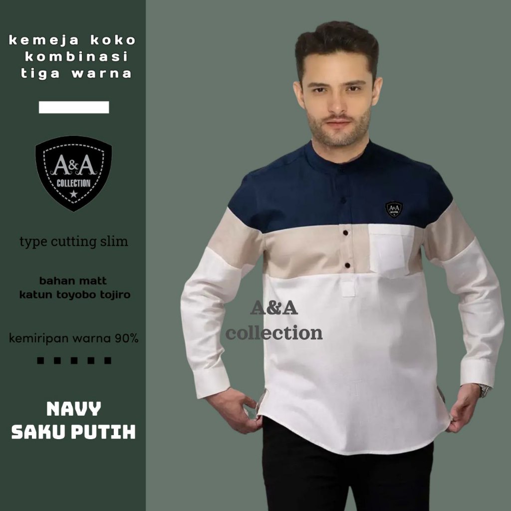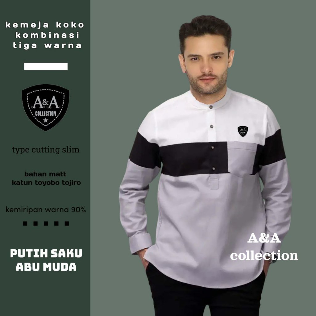 (Gratis Ongkir) KEMEJA KOKO KURTA PANJANG KOMBINASI TIGA WARNA