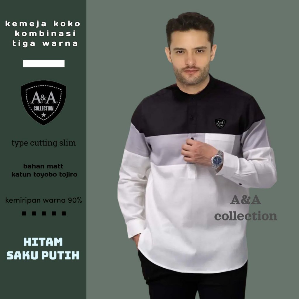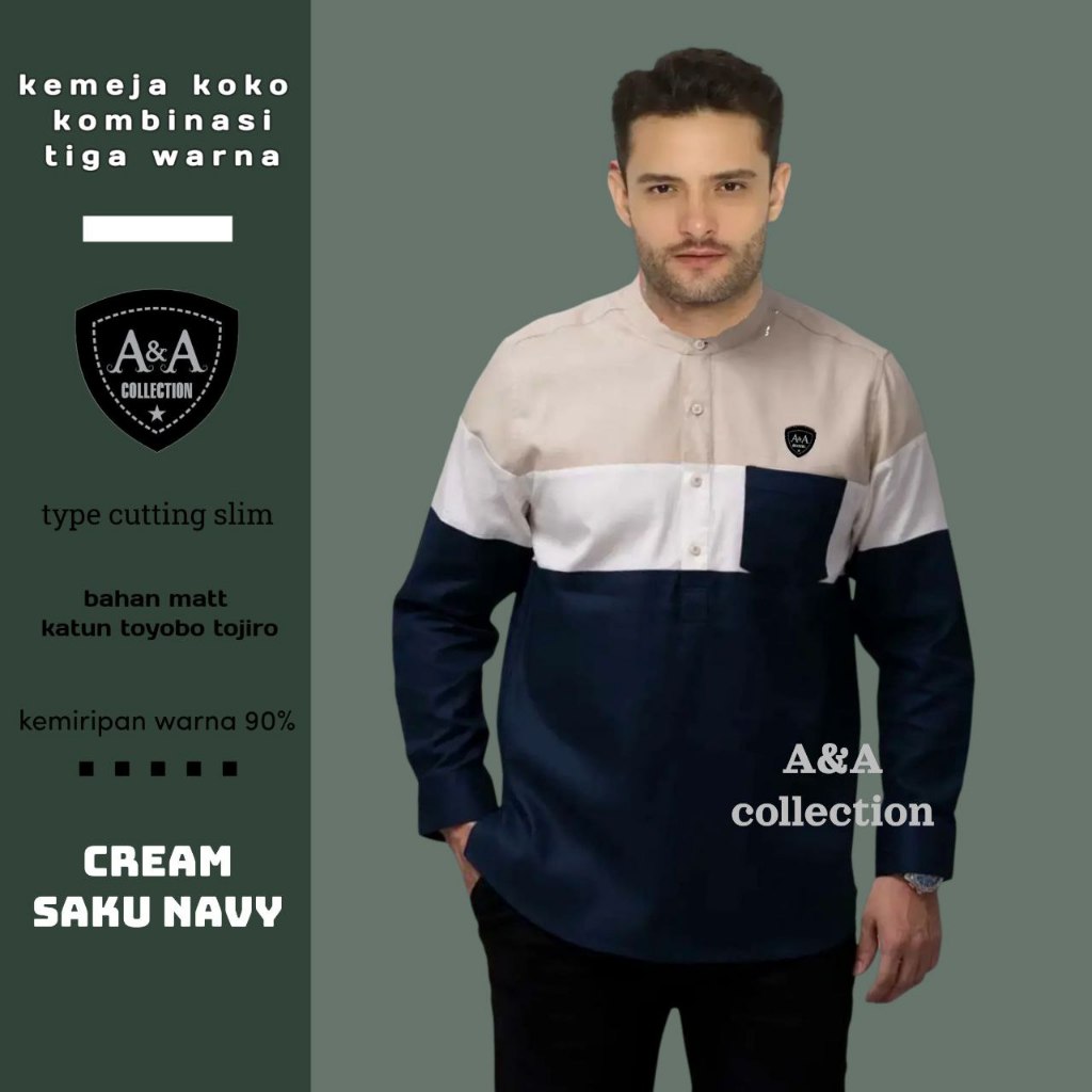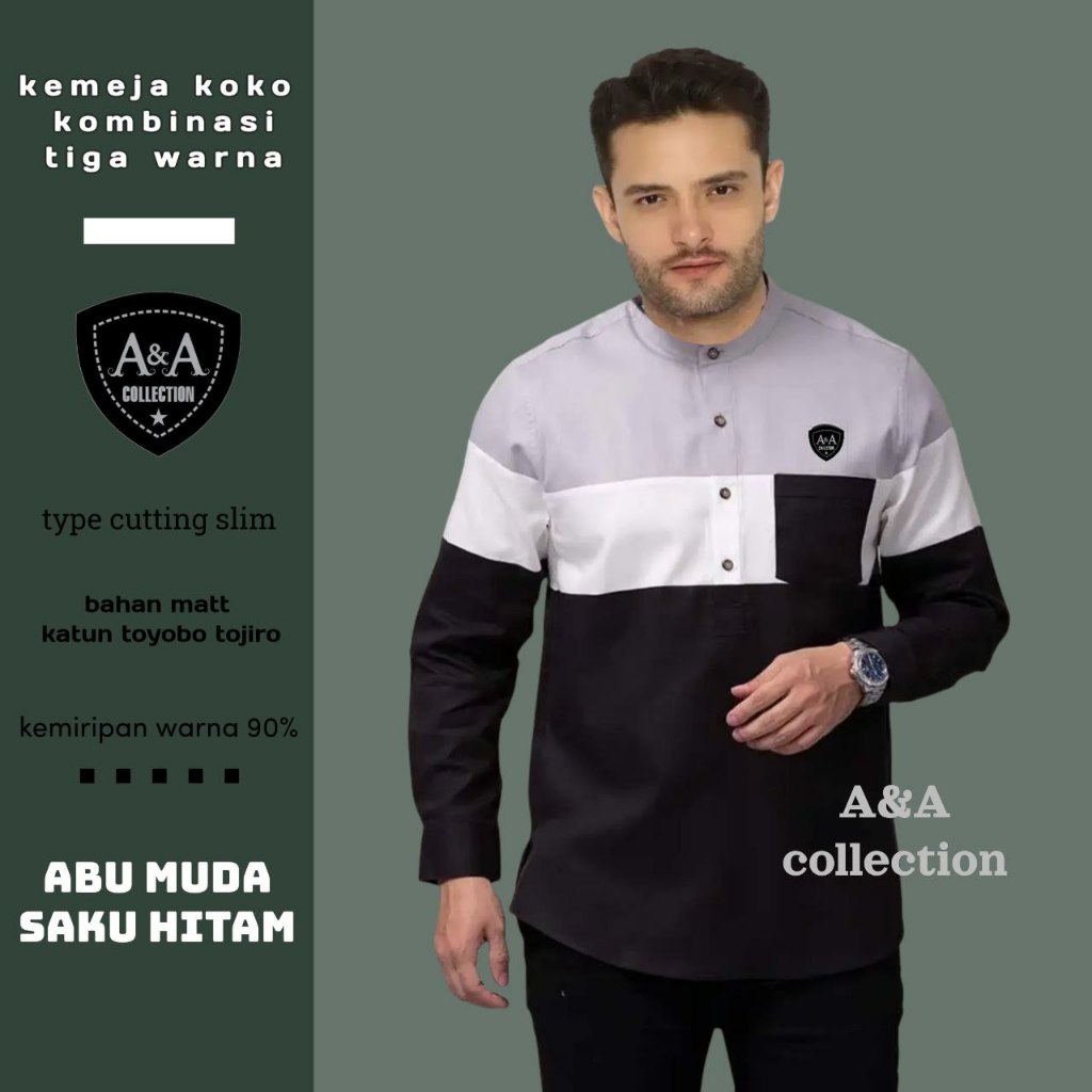 (Gratis Ongkir) KEMEJA KOKO KURTA PANJANG KOMBINASI TIGA WARNA