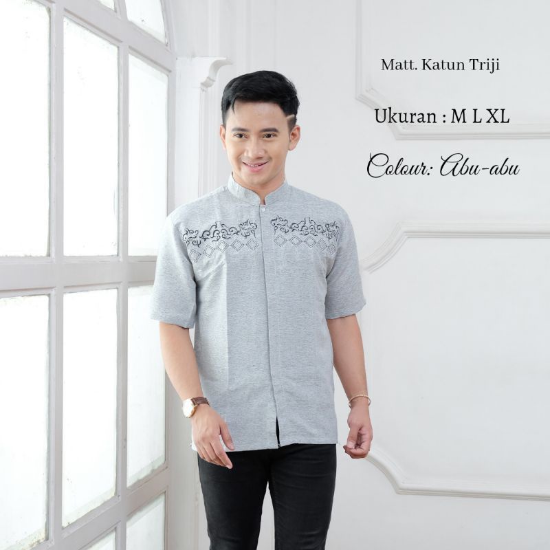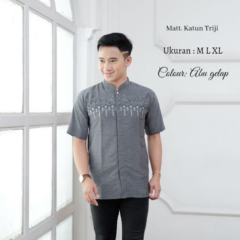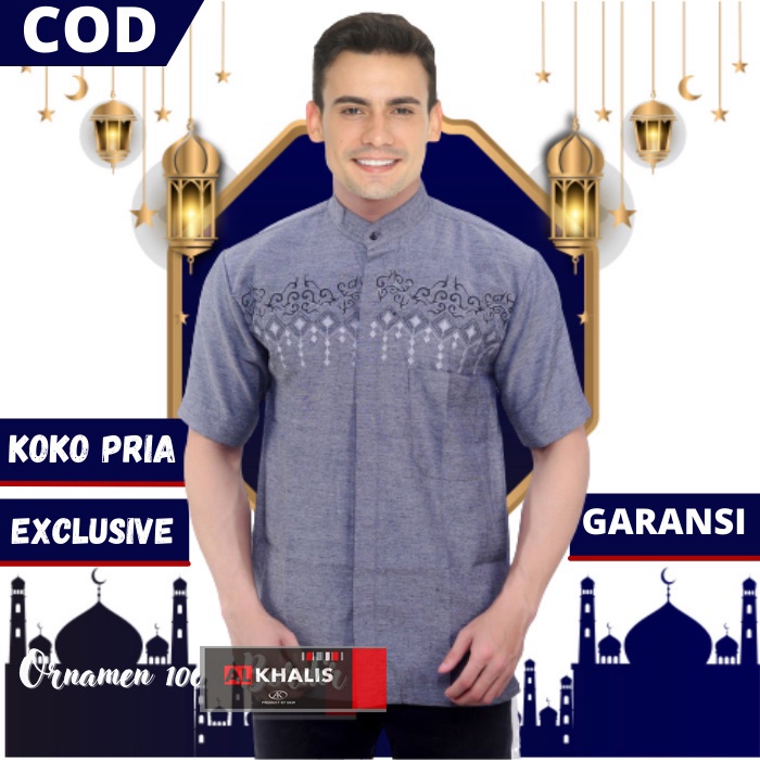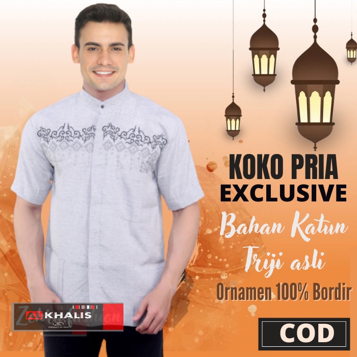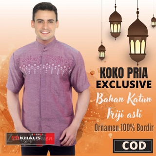 (Gratis Ongkir) Baju Koko Motif Bordir Lengan Pendek ALkhalis