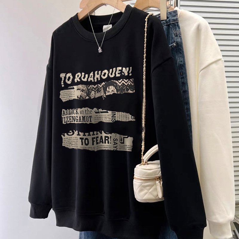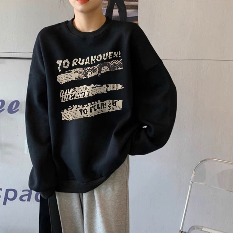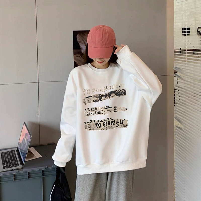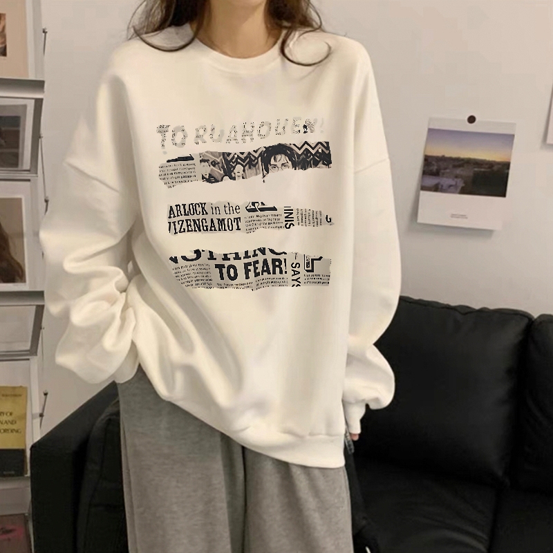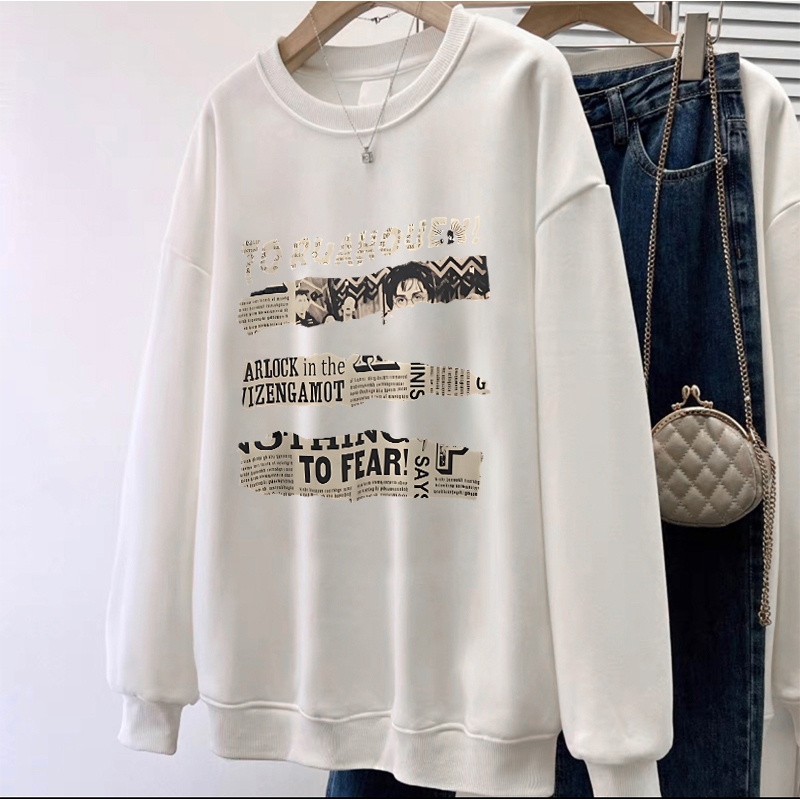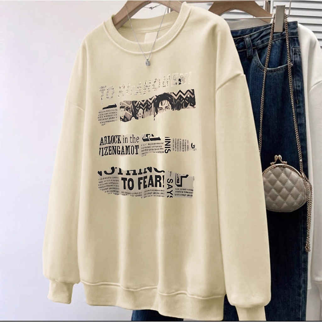 Sweater Wanita Oversize Lengan Panjang Knitwear Korean Style Polos Bahan Katun Motif Print Terlaris