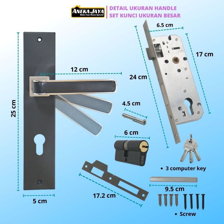 Handle Set Kunci Pintu Hitam Ring Silver Ukuran Besar 25 cm Tanggung 20 Kecil 15 - Gagang Handle Kamar Utama