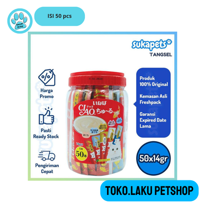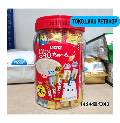 isi 50 pcs PAKET HEMAT Cemilan Ciao Churu Toples Snack Kucing Tuna Variety Pack 50x14gr