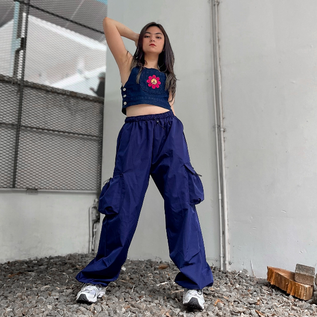 Celana Cargo Kasual Teachwear Stretwear Pria Wanita