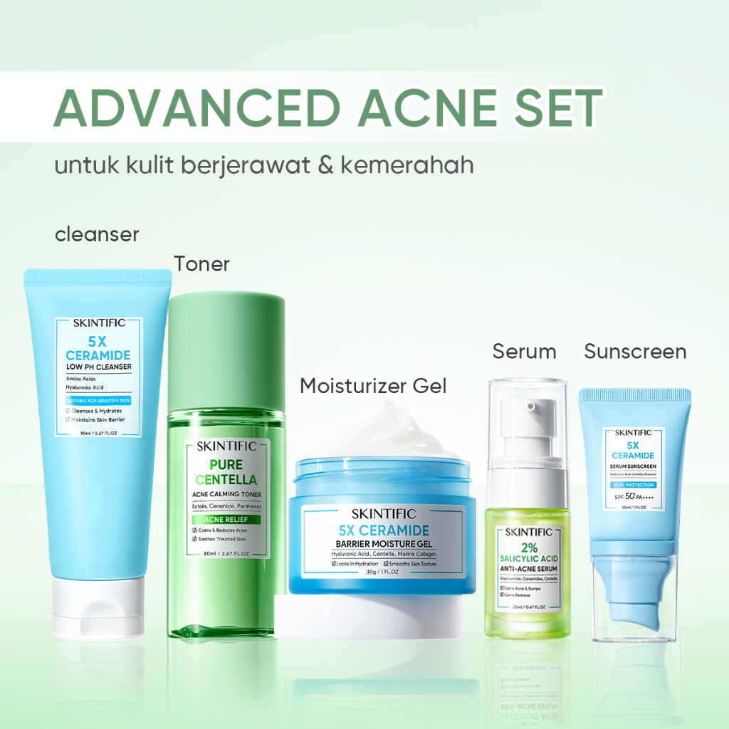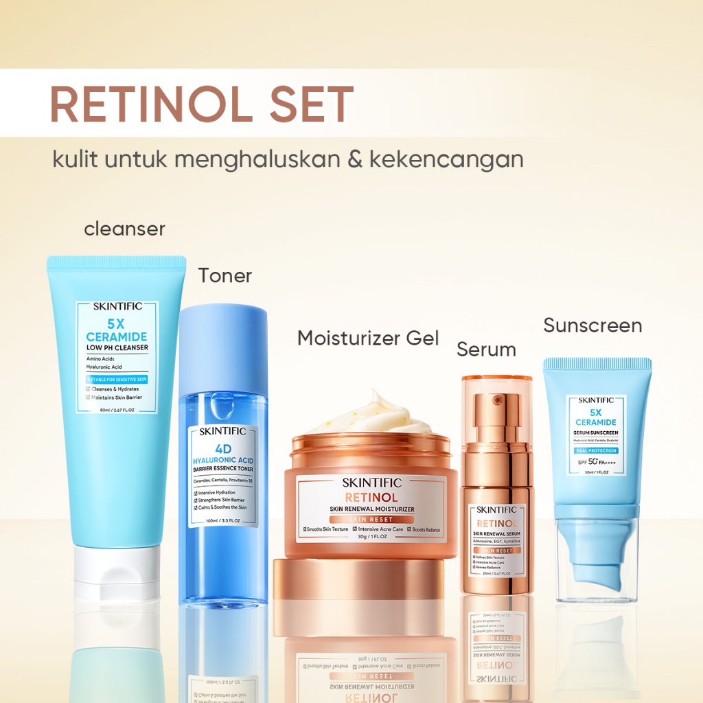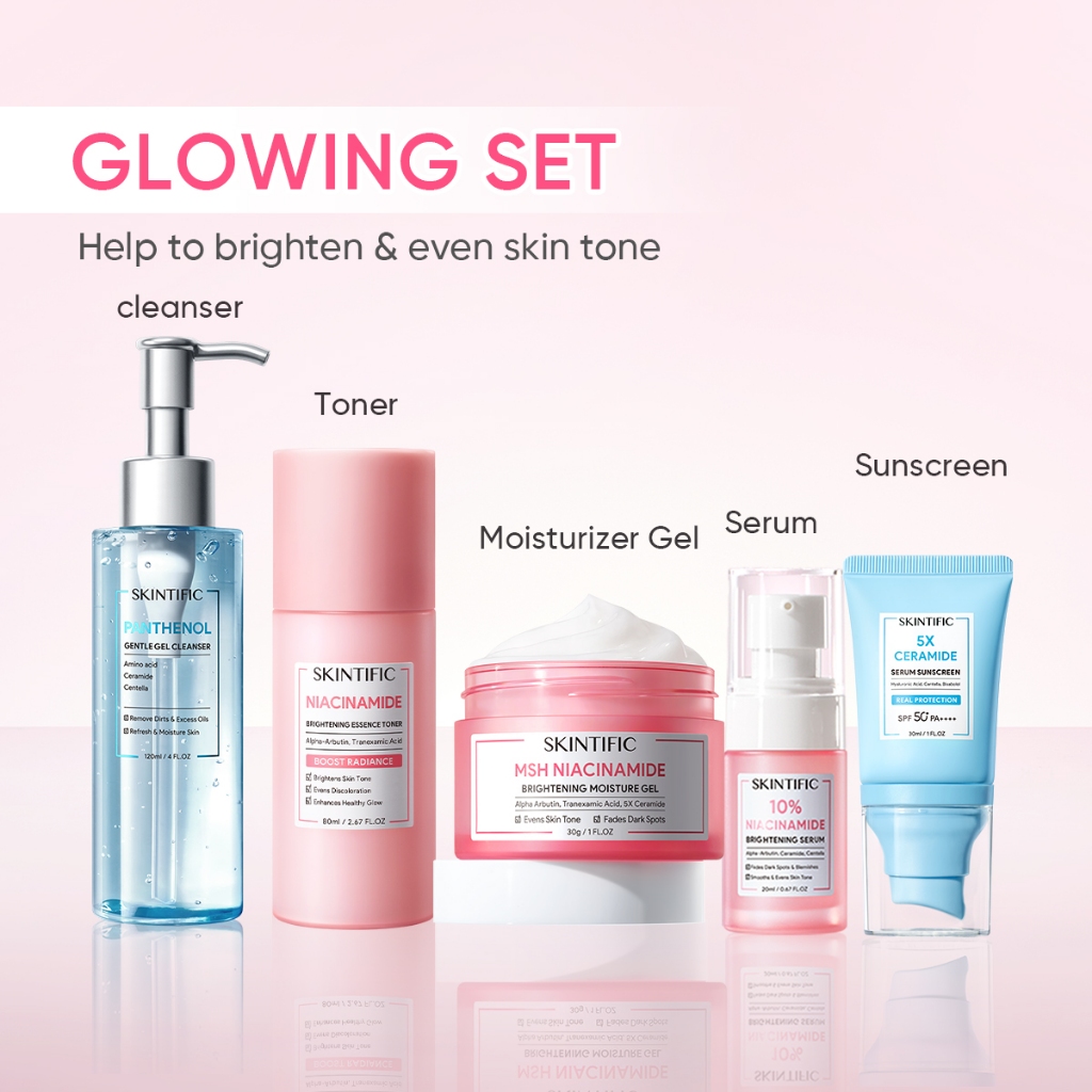 [Hadiah Valentine] SKINTIFIC-5pcs Paket-Skincare Set | Serum Moisturizer Gel Toner Sunscreen CleansER Mousse Facial Wash