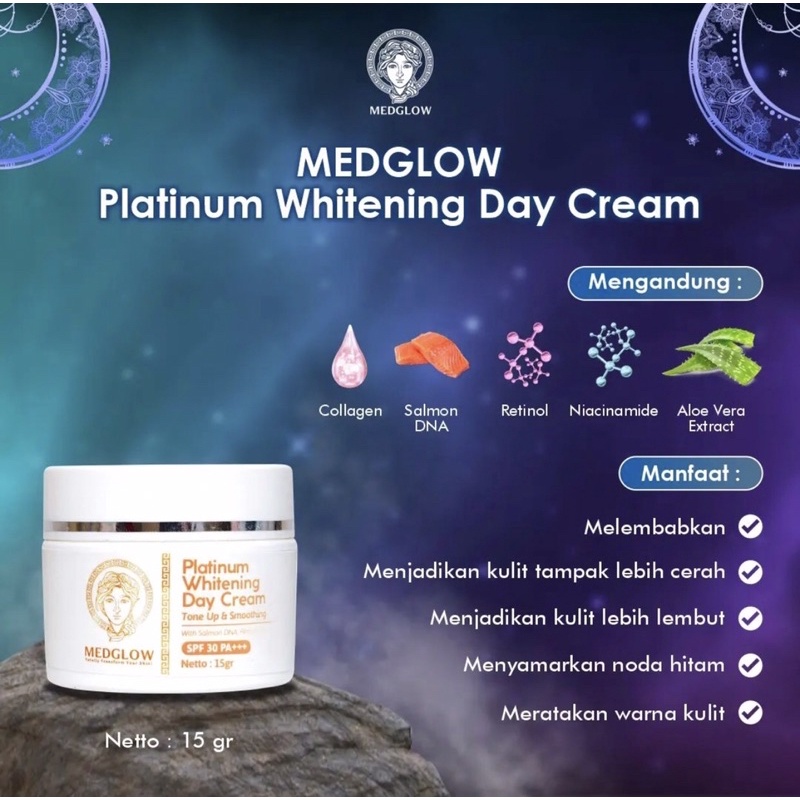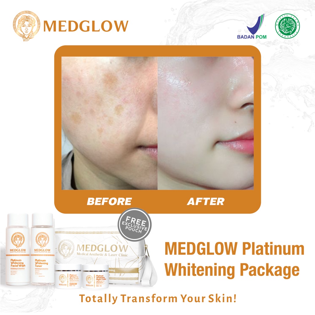 MEDGLOW CLINIC Platinum Brightening Salmon DNA Package + Bonus Tas Kulit| Paket Skincare Krim Pagi Malam Dokter BPOM HAL