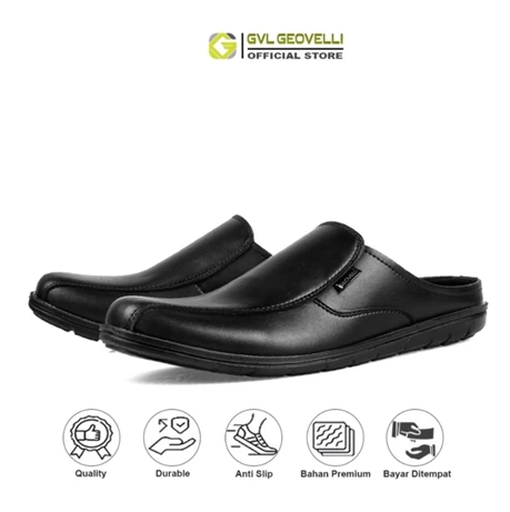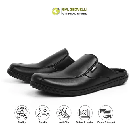 Sandal Slip On Pria Sepatu Sandal Pria GVL Geovelli G1954 Grandoza Sandal Bustong Borngsong Pria Black Brand Lokal