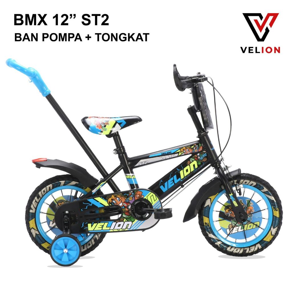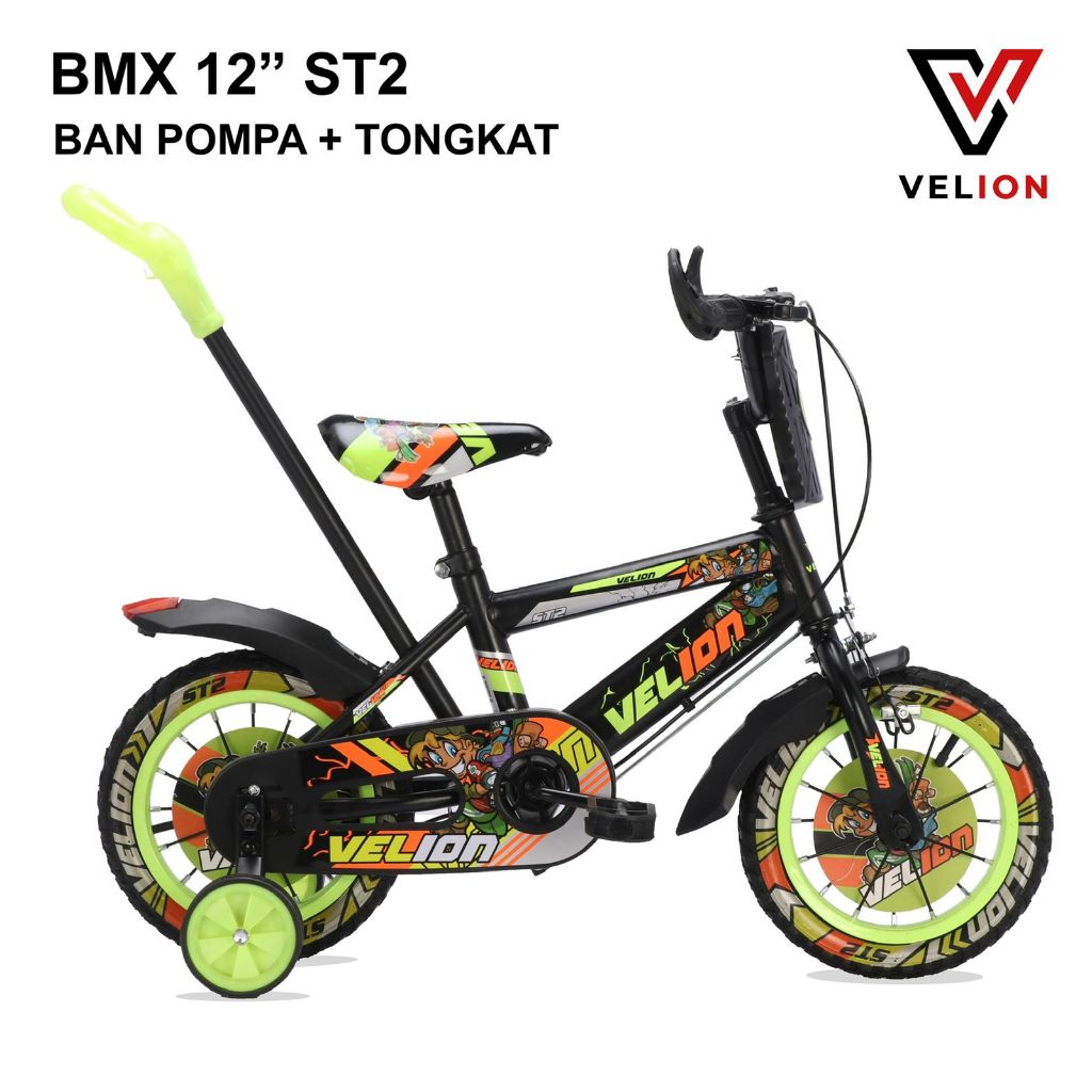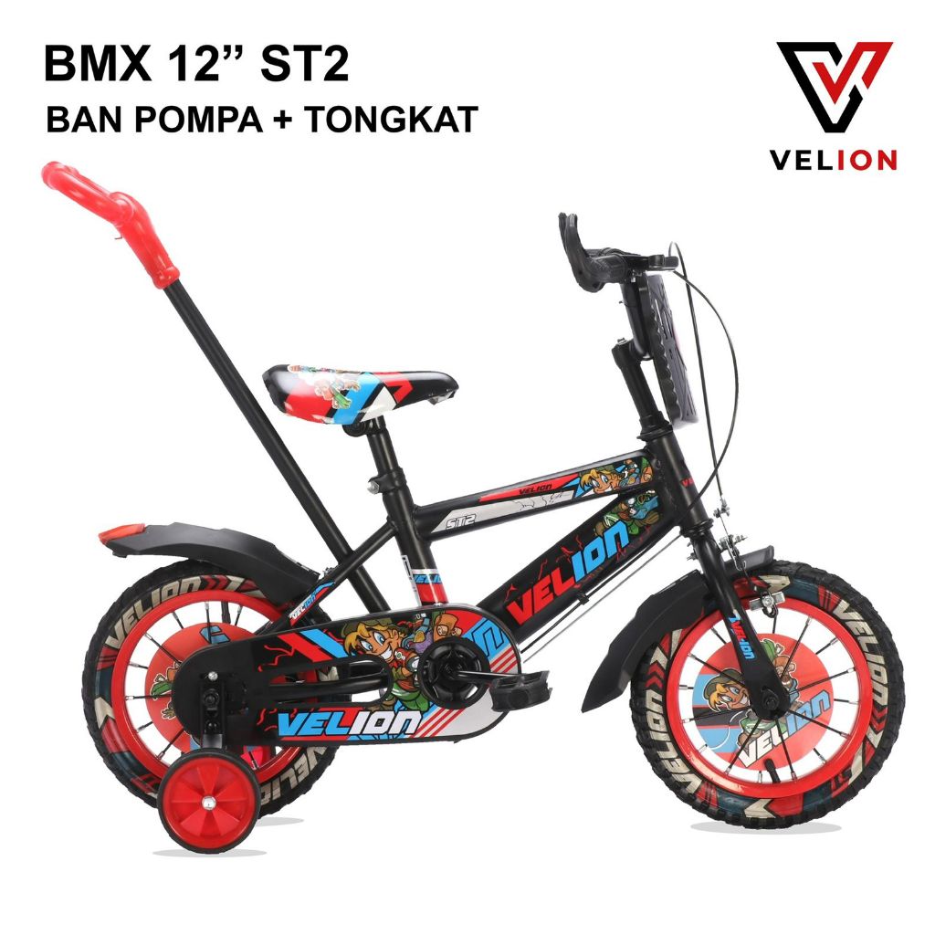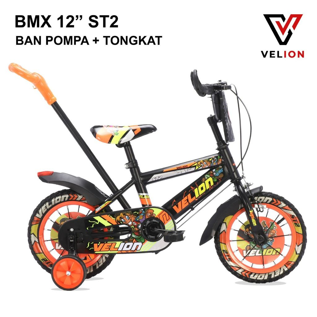 Sepeda BMX 12" VELION SALVO Ban Pompa Fitur Tongkat Setir Bisa Belok dan Polos (Anak Usia 3-5 Tahun) Bonus Botol Air