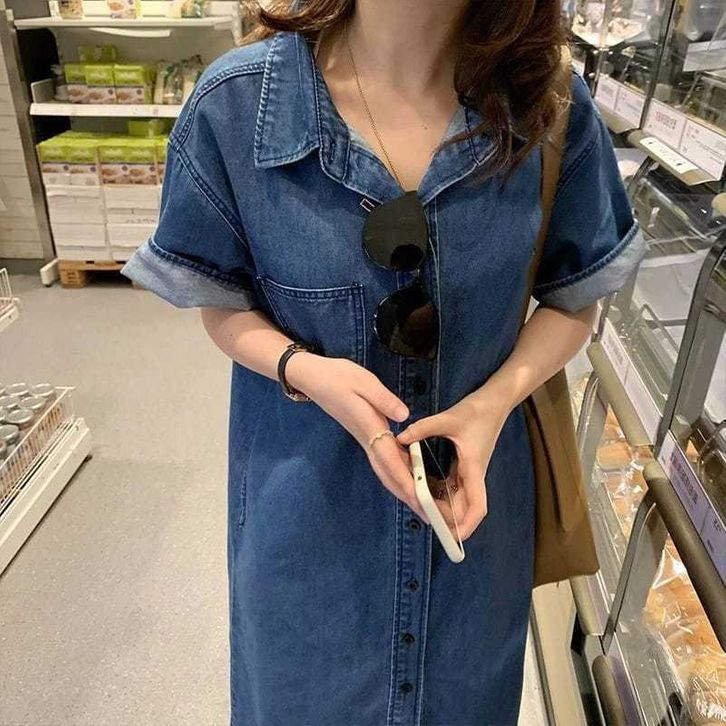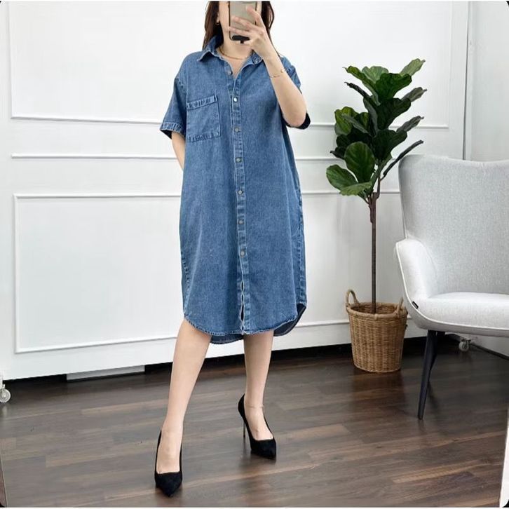 DRESS DENIM WANITA NANDO DRESS DENIM BIRU DAN SNOW DENIM BAHAN JEANS PREMIUM LENGAN PENDEK KASUAL SIMPLE SAKU SATU 9081