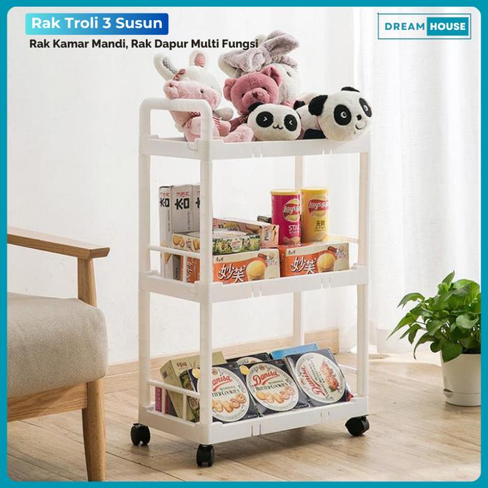 RAK TROLI RAK RODA RAK DORONG SUSUN RAK DAPUR RAK KAMAR MANDI PENYIMPANAN PERALATAN PERLENGKAPAN PERABOTAN MULTI