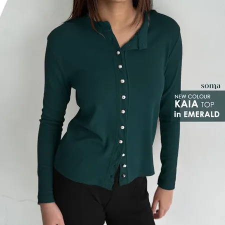 KAIA TOP | Atasan Knit Wanita Lengan Panjang Basic Korean Top Summer Baju Knit Kancing Rib Wanita Long Sleeve SOMA