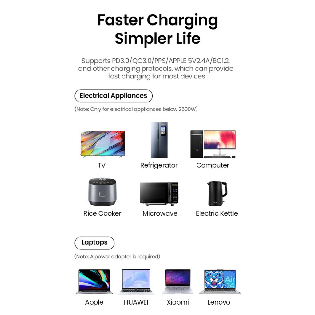 UGREEN POWER STRIP 6 IN 1 STOP KONTAK + ADAPTER 30W USB A USB C 15143