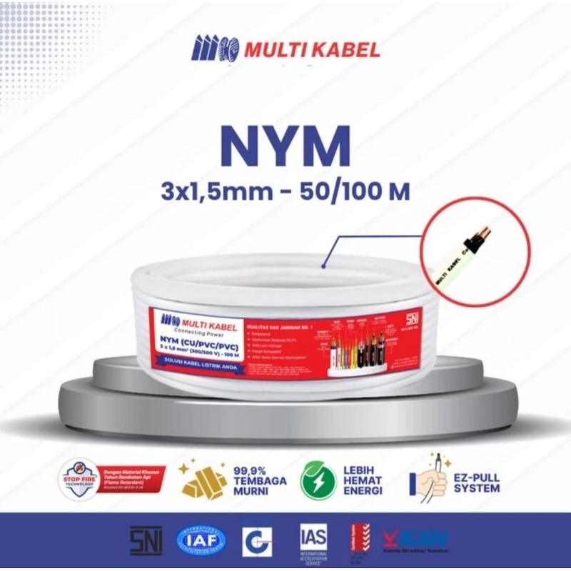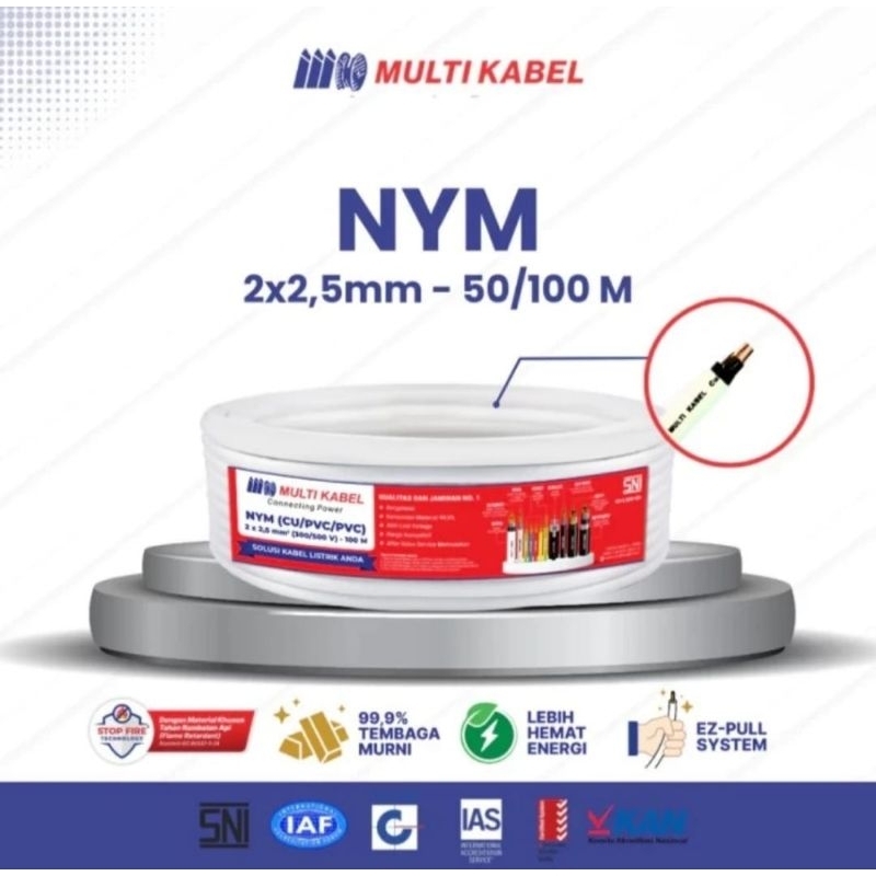 KABEL LISTRIK MULTI NYM 2X1,5 MM2 TEMBAGA MURNI SNI LMK ISO 1ROLL 50METER FULL / KABEL LISTRIK SIMAS NYM 2X1,5 MM2 TEMBAGA SNI 1ROLL 50YARD