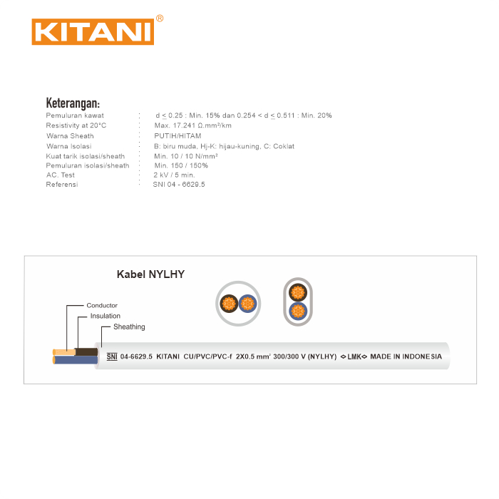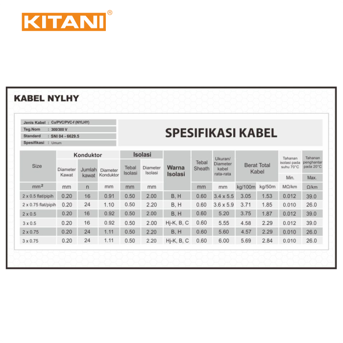 KITANI - NYLHY 2×0.75 MM² – KABEL TEMBAGA SERABUT - 50 METER