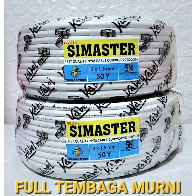 KABEL LISTRIK TEMBAGA NYM SIMAS 2X1,5 /ASLI TEMBAGA MURNI SNI50YARD