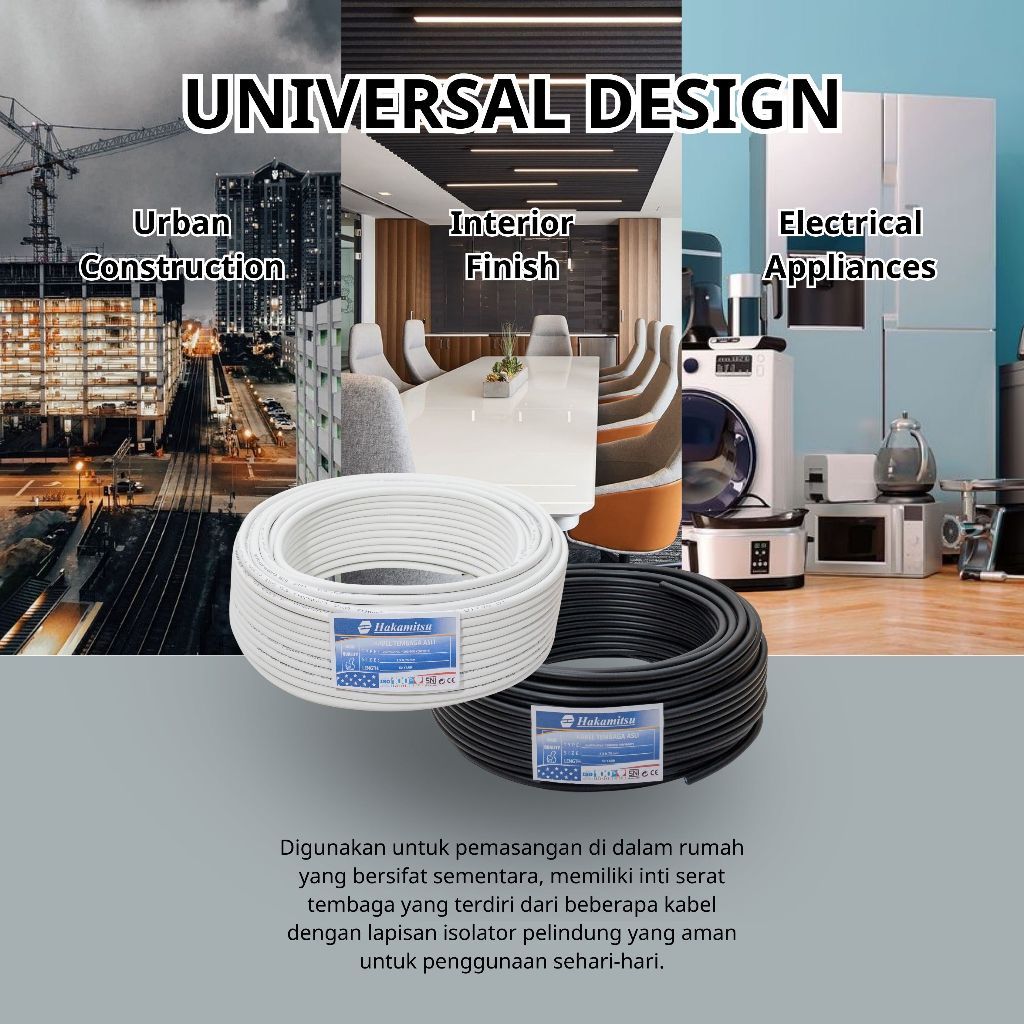 KABEL TEMBAGA ASLI KABEL LISTRIK KABEL NYMHY 2X1.5MM /WARNA PUTIH & HITAM