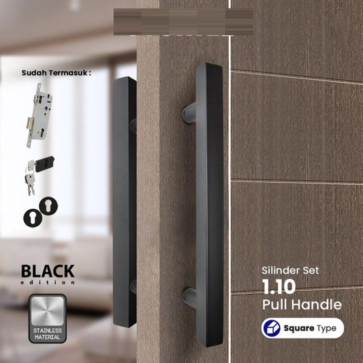 Gagang Pintu Rumah Baut Tembus Pull Handle Minimalis Hitam 1.10