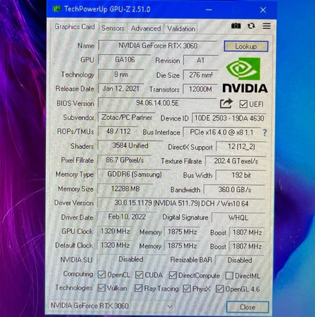 VGA RTX 3060 12GB ZOTAC TWIN EDGE OC GDDR6