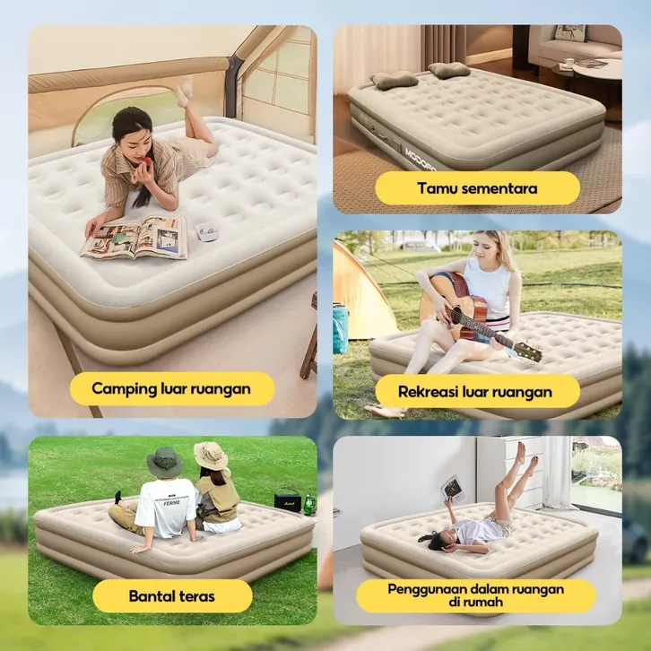 MODOFO Tempat Tidur Tiup Otomatis untuk Rumah Ganda Kasur Udara Luar Ruangan Portabel Lanta 2 Orang Dapat Dilipat Portab