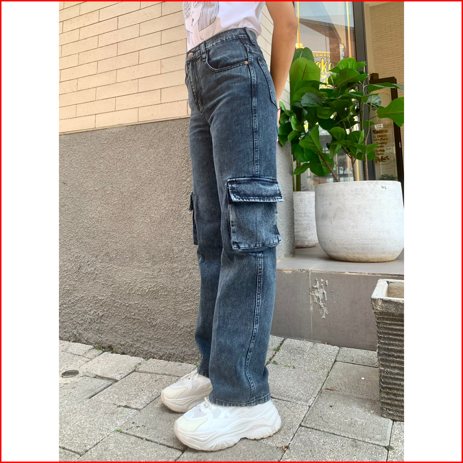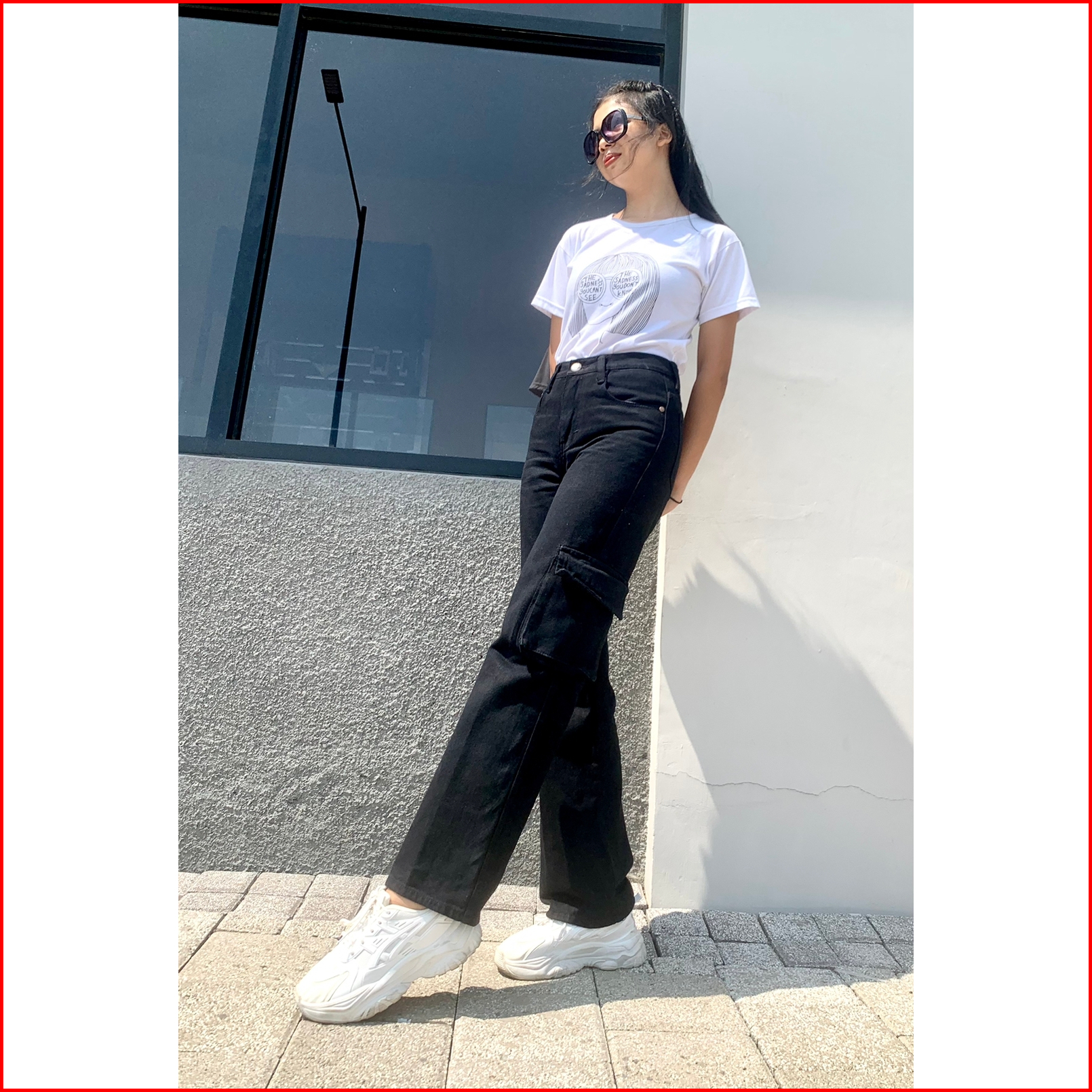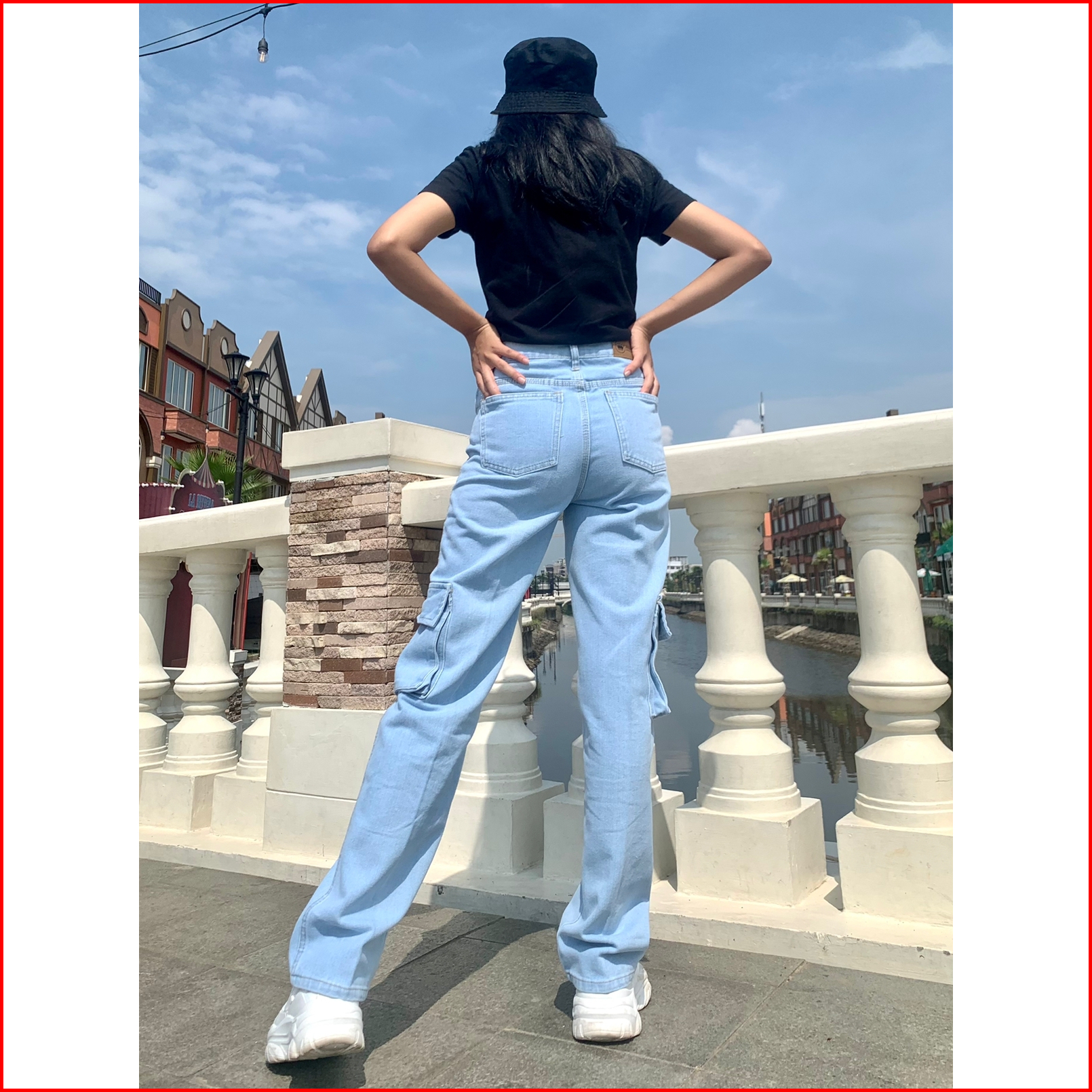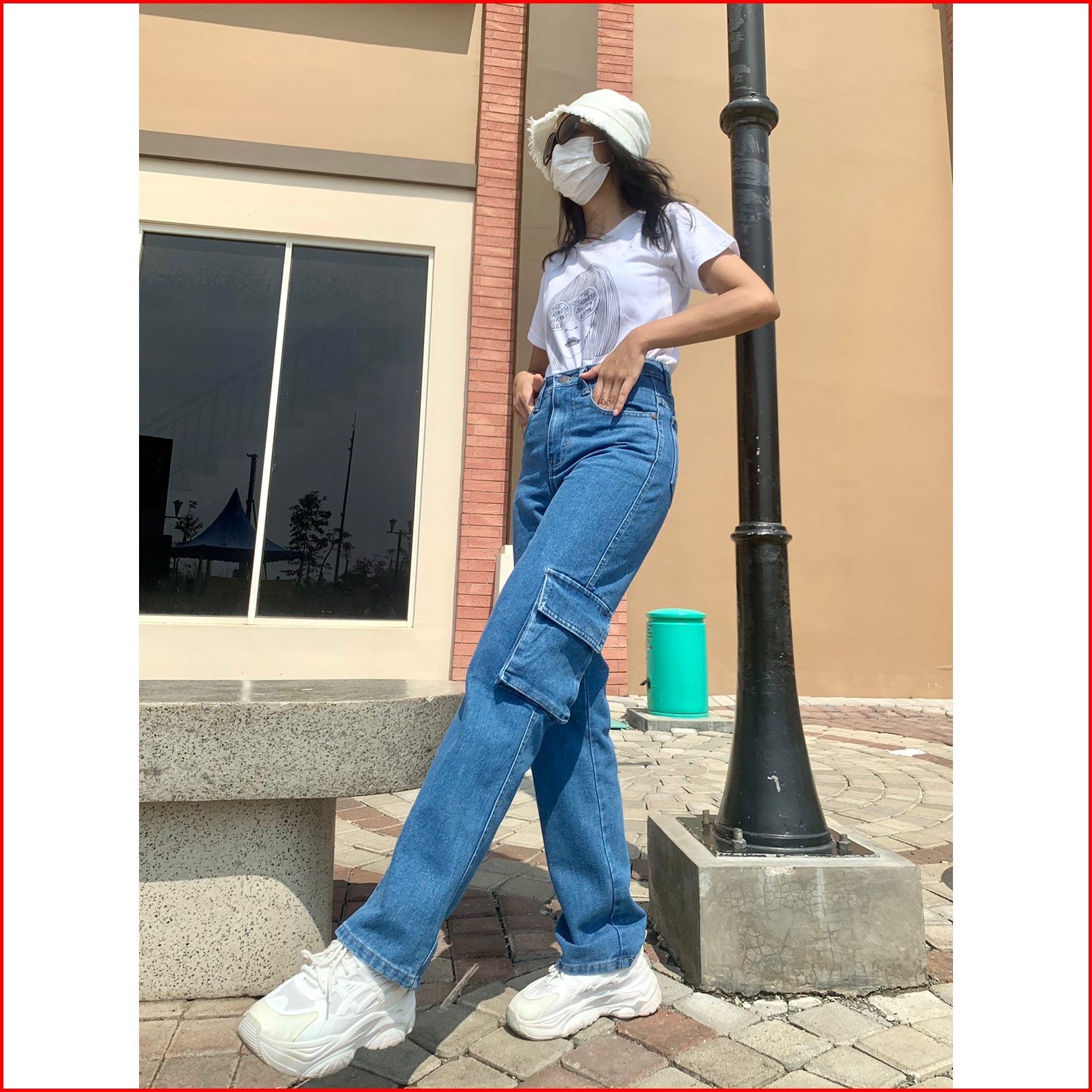 Fwr - Celana Highwaist Loose Cargo Jeans Maudyy