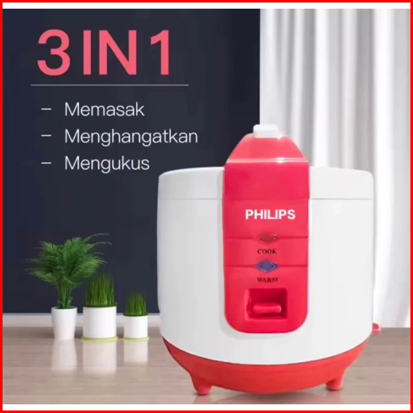Philips 2l Rice Cooker Hd3119 32 - 400watt Penanak Nasi Analog Golden Ceramic Red Merah Mejikom M...