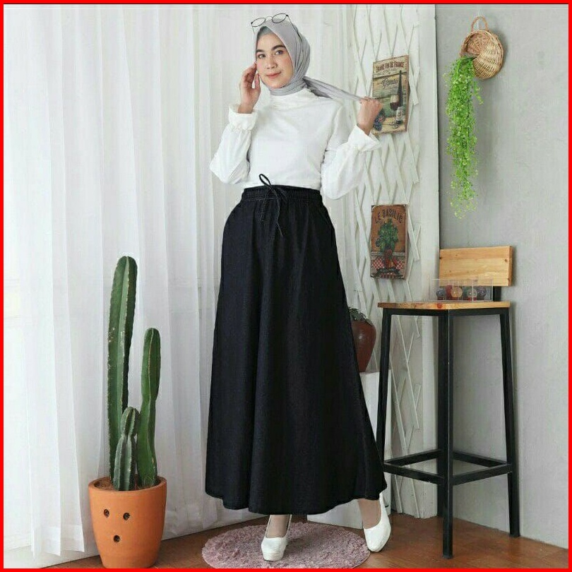 Rok Jeans Panjang Polosan Jumbo Tali Aktif Rok Panjang Jeans Jumbo Polosan Tali Aktif