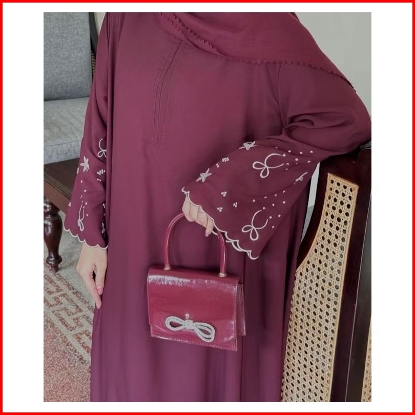 Abaya Premium Wanita Elegan Abaya Bordir Motif Pita