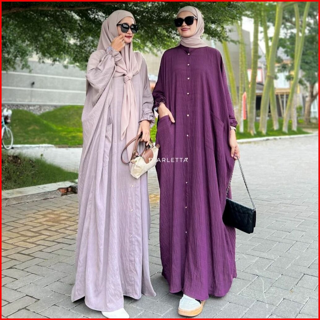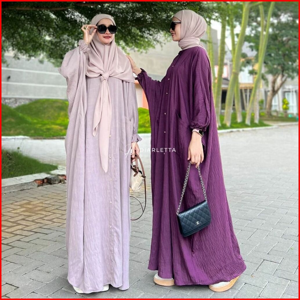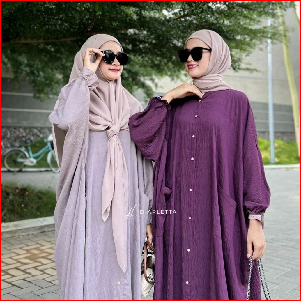 Raudhia Batwing Dress Abaya Kaftan Busui Friendly Polo Linen By Diarletta