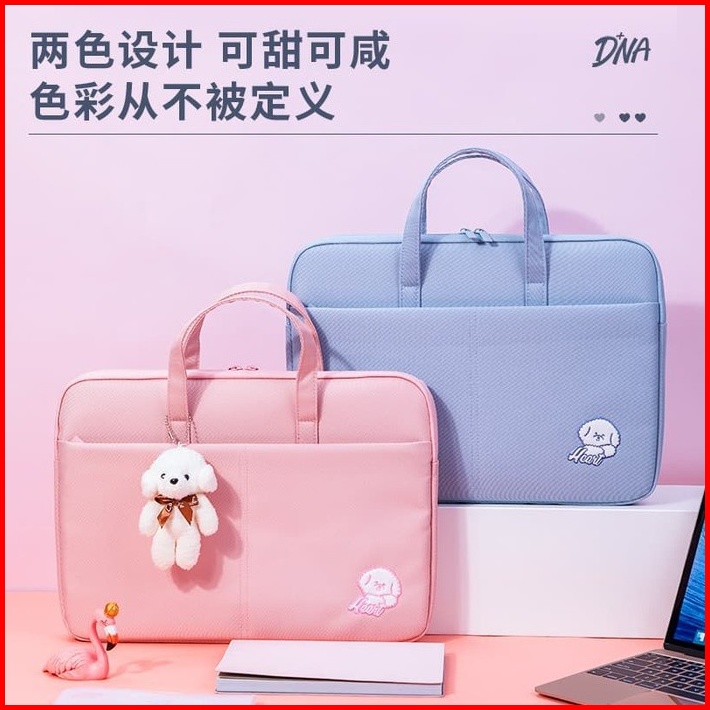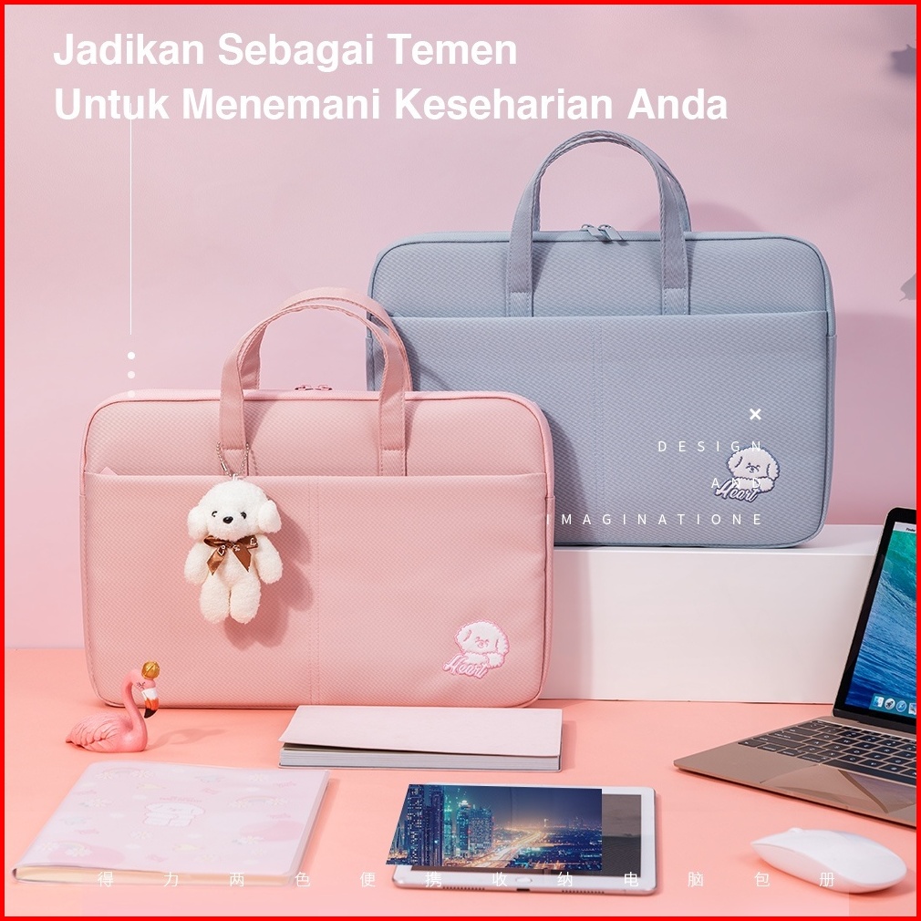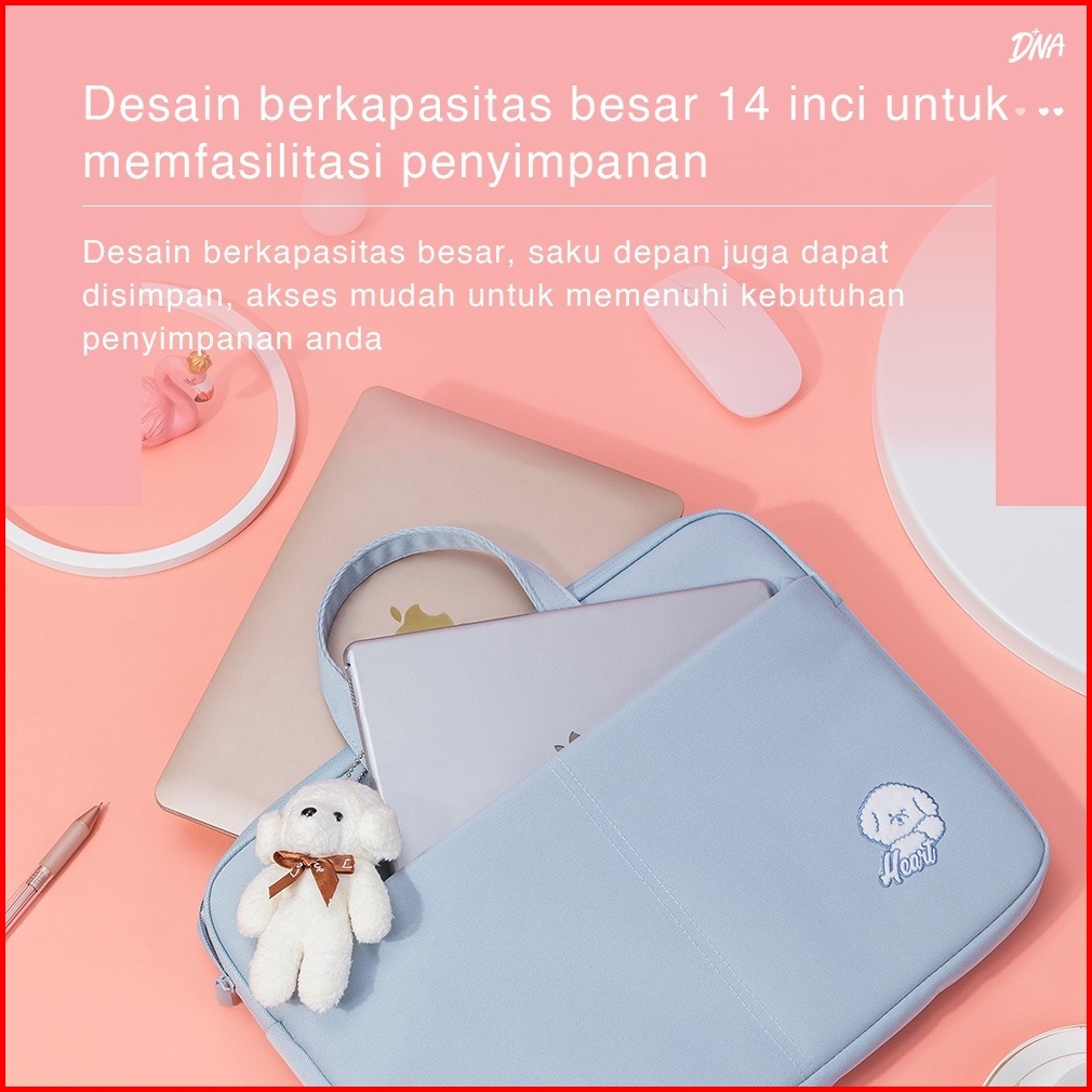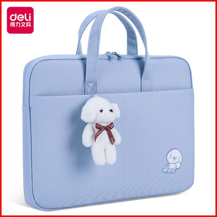 Tas Laptop Deli 14 Inch Aesthetic Lucu Wanita Pria Bahan Tebal Lapis Busa Free Boneka - 3756