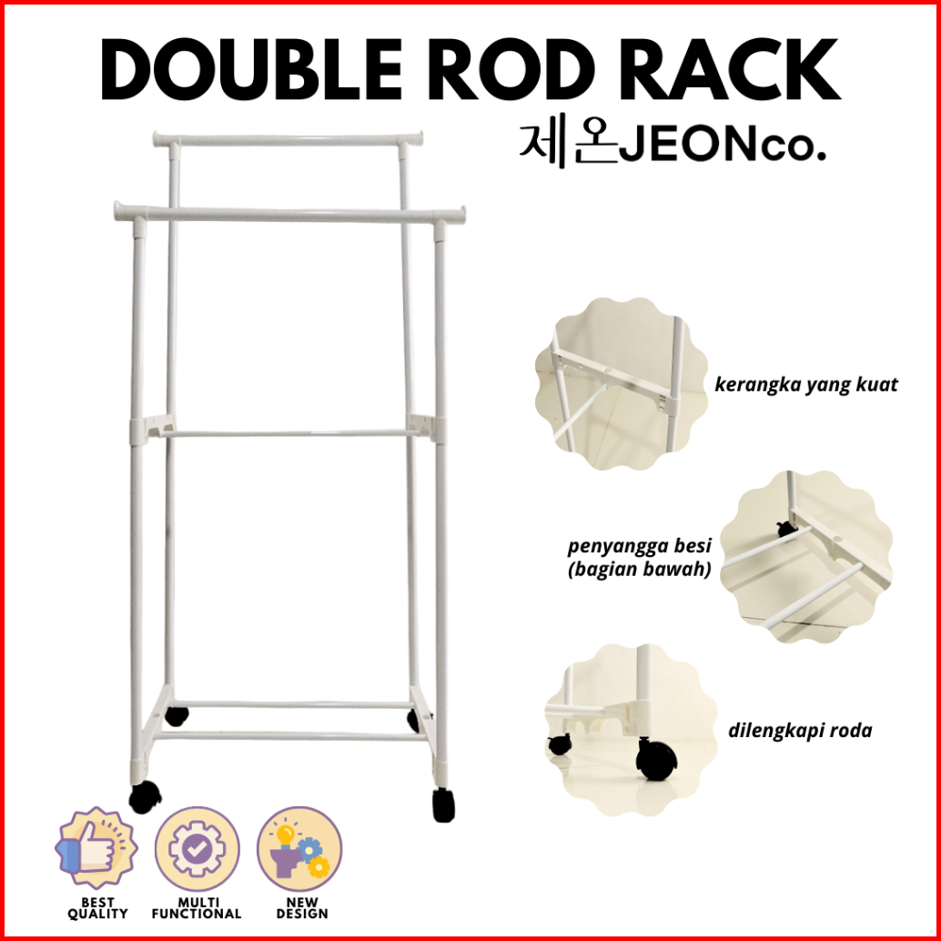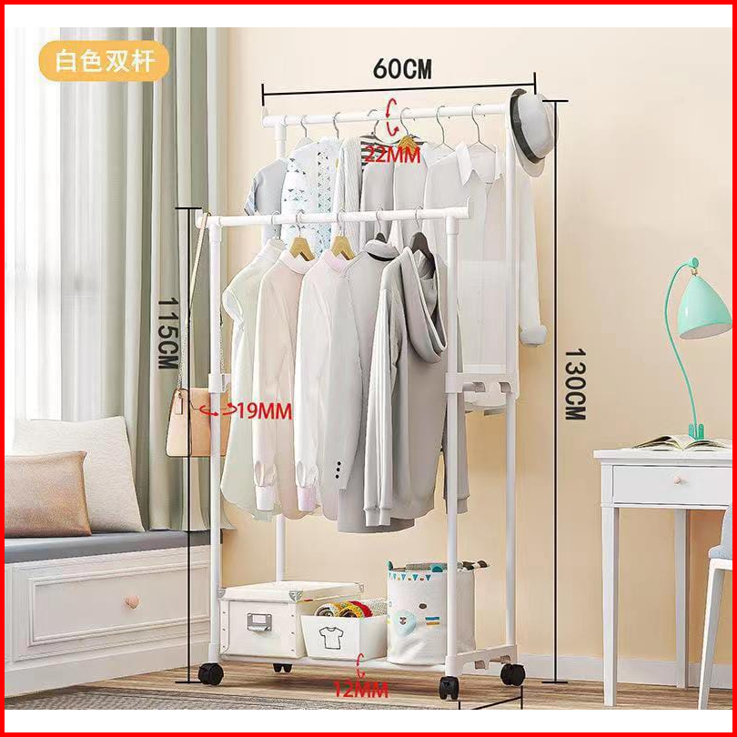 Double Rod Rack Dan Single Rod Rack Gantung Rak Serbaguna Pakaian Baju Hijab Gantungan Laundry Pajangan Display Stand Ha
