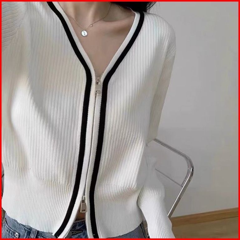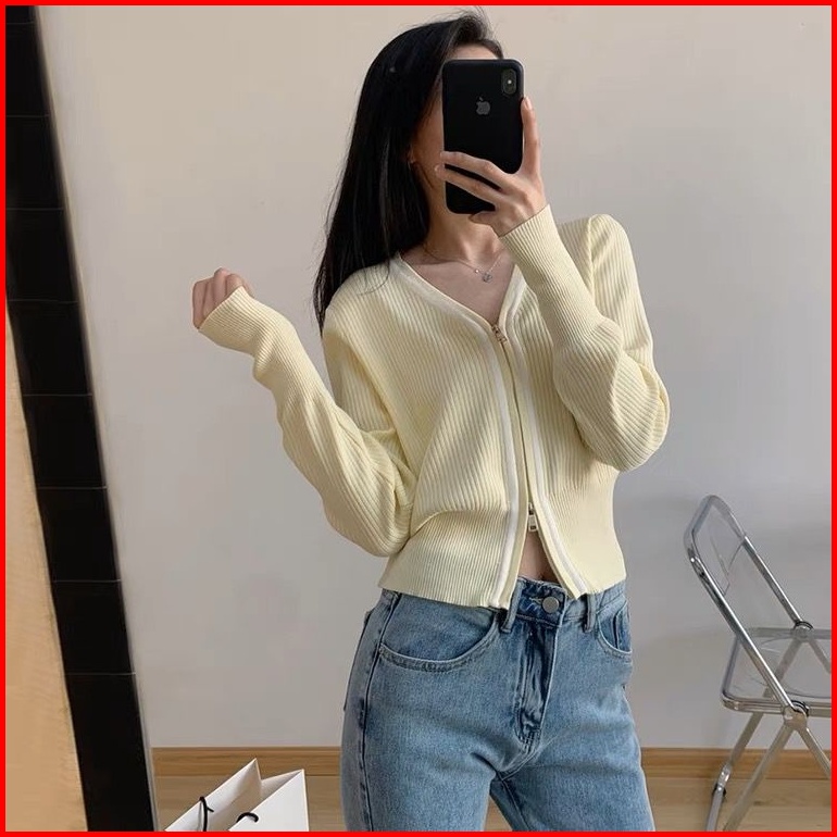 Lingerie Master - T-37 Korean Outer Knit Zip Shirt Blouse Long Sleeves Atasan Kemeja Resleting